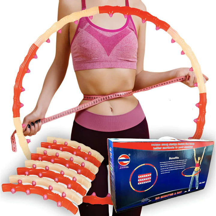 Schlank und fit mit diesem Hula Hoop Reifen! Mit 1,0 kg Gewicht und 95 cm Durchmesser perfekt für Anfänger und Fortgeschrittene. Die weiche Schaumstoffschicht macht das Training super bequem, die Massagewellen innen kurbeln die Fettverbrennung an und lockern die Muskulatur. Einfach zusammenzustecken mit dem Easy-Lock-System - platzsparend und praktisch für unterwegs. Du kannst die Größe anpassen, indem du nur 7 statt 8 Segmente verwendest. Ideal für zu Hause, ob vor dem Fernseher oder im Garten. Trainiert Bauch, Taille und Po - für eine schlanke Silhouette und mehr Körperspannung. Einfach ausprobieren und dranbleiben - die Ergebnisse werden dich begeistern! Der Reifen liegt gut an der Hüfte an und rutscht nicht. Perfekt für alle, die ihr Workout abwechslungsreicher gestalten wollen. Ob morgens zum Wachwerden oder abends zum Abschalten - mit diesem Hula Hoop macht Fitness richtig Spaß. Einfach drehen und die Pfunde purzeln lassen!