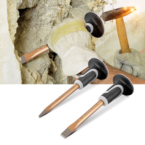 Für alle, die gerne mit Stein und Beton arbeiten! Dieses praktische 2er-Set mit flachem und spitzem Meißel ist aus hochwertigem Karbonstahl gefertigt und damit extrem hart und langlebig. Mit 250mm Länge liegen sie gut in der Hand und die gehärtete Schlagkappe hält auch kräftigen Hammerschlägen stand. Perfekt für präzise Schnitte und detailierte Schnitzarbeiten in Stein, Beton oder Mauerwerk. Ob du nun eine Mauer abtragen, Steine bearbeiten oder einfach nur was reparieren willst - mit diesen Profi-Meisseln klappt's! Die spitze Variante für grobe Arbeiten, der flache für glatte Schnitte. Ein Muss für jeden Handwerker und Hobby-Bastler! Einfach Hammer nehmen und loslegen - aber nicht vergessen: Schutzbrille tragen!