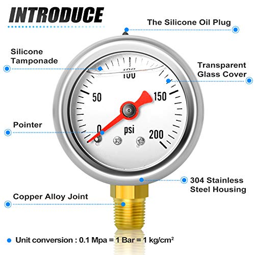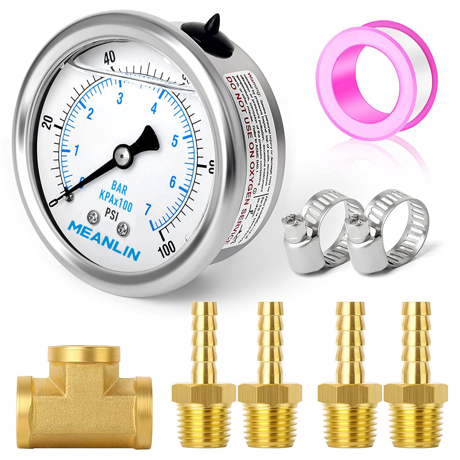 MEANLIN Flüssigkeitsmanometer Edelstahl 0-20Bar - Für Luftkompressor & Wasserfilter