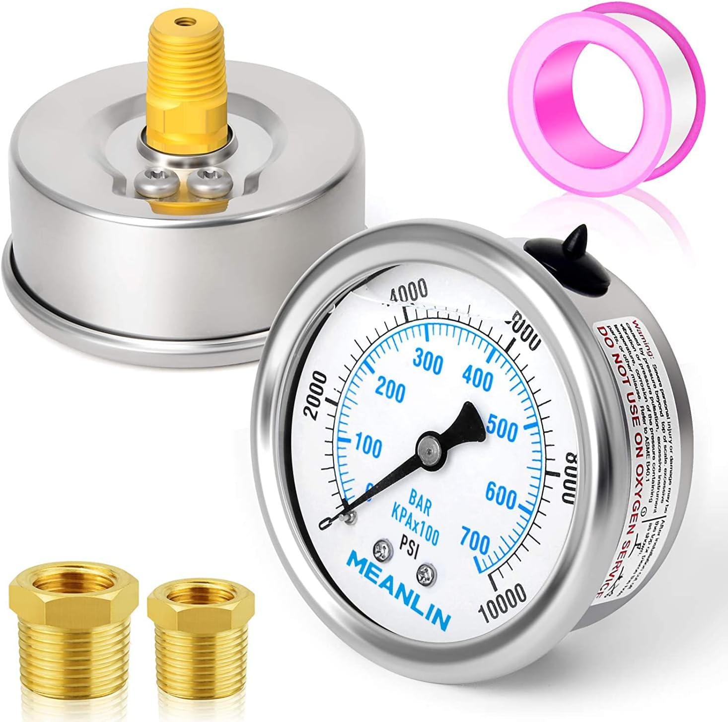 Brauchst du ein robustes Manometer für deine Druckluftanlage oder Wasserfilter? Das MEANLIN Flüssigkeitsmanometer aus Edelstahl ist genau das Richtige! Mit Messbereich von 0-20 Bar bzw. 0-300 PSI und temperaturbeständig von 0-55°C. Das 316er Edelstahlgelenk und die untere Halterung machen es super langlebig. Perfekt für Luftkompressoren, Luftregler, Wasserfilter und Center-Unterbau. Das 1/4\ BSP Gewinde passt ideal für die meisten Anwendungen. Übrigens: Die BSP-Gewindegröße ist eine Nenngröße - nicht der tatsächliche Durchmesser! Einfach montieren und du hast immer den perfekten Druck im Blick. Ob für die Werkstatt oder professionelle Anwendungen - dieses Manometer macht einfach einen super Eindruck!