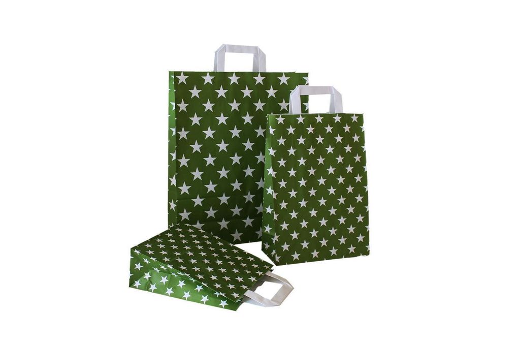 Praktische Papiertragetaschen mit stylischem Sternen-Design in Grau! Dieses Set enthält 50 stabile Taschen mit den Maßen 22x31 cm - perfekt für den täglichen Gebrauch. Mit einer Stärke von 80 g/m² sind sie robust genug für die meisten Waren, aber dennoch leicht und handlich.