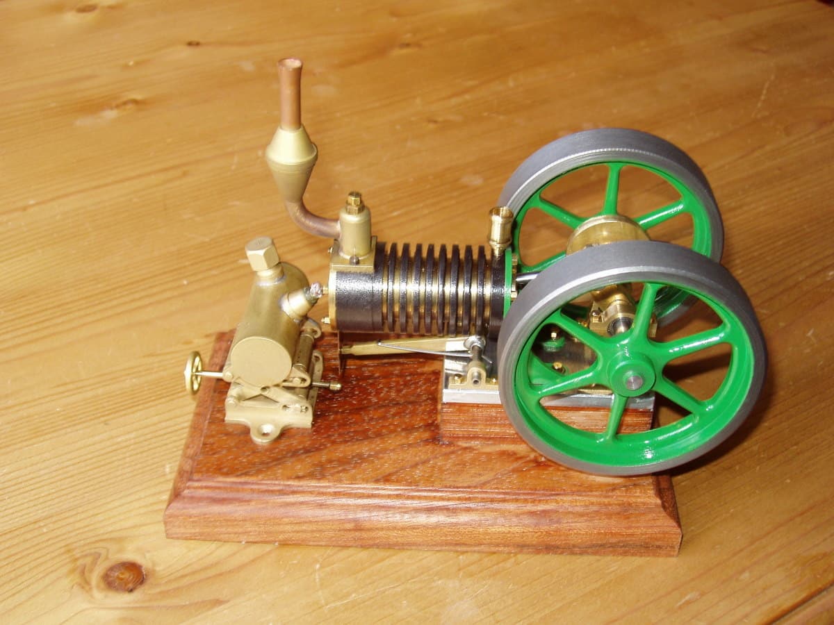 Für alle Tüftler und Modellbau-Fans: Dieser Flammenfresser Bausatz von Bengs ist ein richtiges Profi-Projekt! Du bekommst alle Teile geliefert - die Frästeile sind schon fertig bearbeitet, für die Drehteile brauchst du allerdings eine Drehbank. Das meiste ist aus Messing, die Schwungräder aus Stahlguss. Am Ende montierst du alles auf einer schönen Eichenholzplatte. Der Motor läuft dann mit etwa 200-400 Umdrehungen pro Minute - echt beeindruckend! Der mitgelieferte Brenner ist höhenverstellbar, damit du die Drehzahl regulieren kannst. Im Lieferumfang sind wirklich alle Teile dabei: Schrauben, Muttern, Kugellager, Federn und natürlich der komplette Bauplan mit Zeichnungen. Technische Daten: Länge 170mm, Breite 100mm, Höhe 110mm, Kolbendurchmesser 16mm. Achtung: Du brauchst Werkzeug wie Gewindebohrer, Feilen und Lötzeug. Ein super Projekt für erfahrene Bastler!