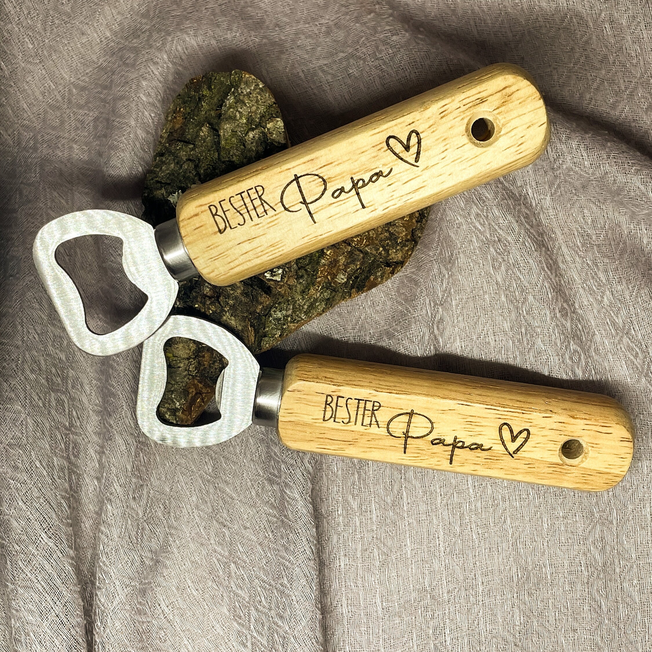 Alter, dieser Flaschenöffner ist das perfekte Geschenk für Papa! Mit der süßen Gravur 'Bester Papa' zeigt er einfach, was man oft nicht sagt. Aus FSC-zertifiziertem Buchenholz und Edelstahl gefertigt - sieht nicht nur gut aus, sondern hält auch ewig. Mit 14 cm Länge liegt er super in der Hand. Perfekt für den nächsten Grillabend, Vatertag oder einfach als kleine Überraschung. Ob Bier, Limo oder Wasser - jede Flasche macht er easy auf. Das ist kein langweiliges Geschenk, sondern etwas Persönliches, das Papa wirklich benutzt. Sieht stylisch aus und ist mega praktisch. Einfach ein Geschenk, das von Herzen kommt und im Alltag immer wieder Freude macht. Ob zum Geburtstag, Weihnachten oder einfach so - damit triffst du garantiert ins Schwarze!