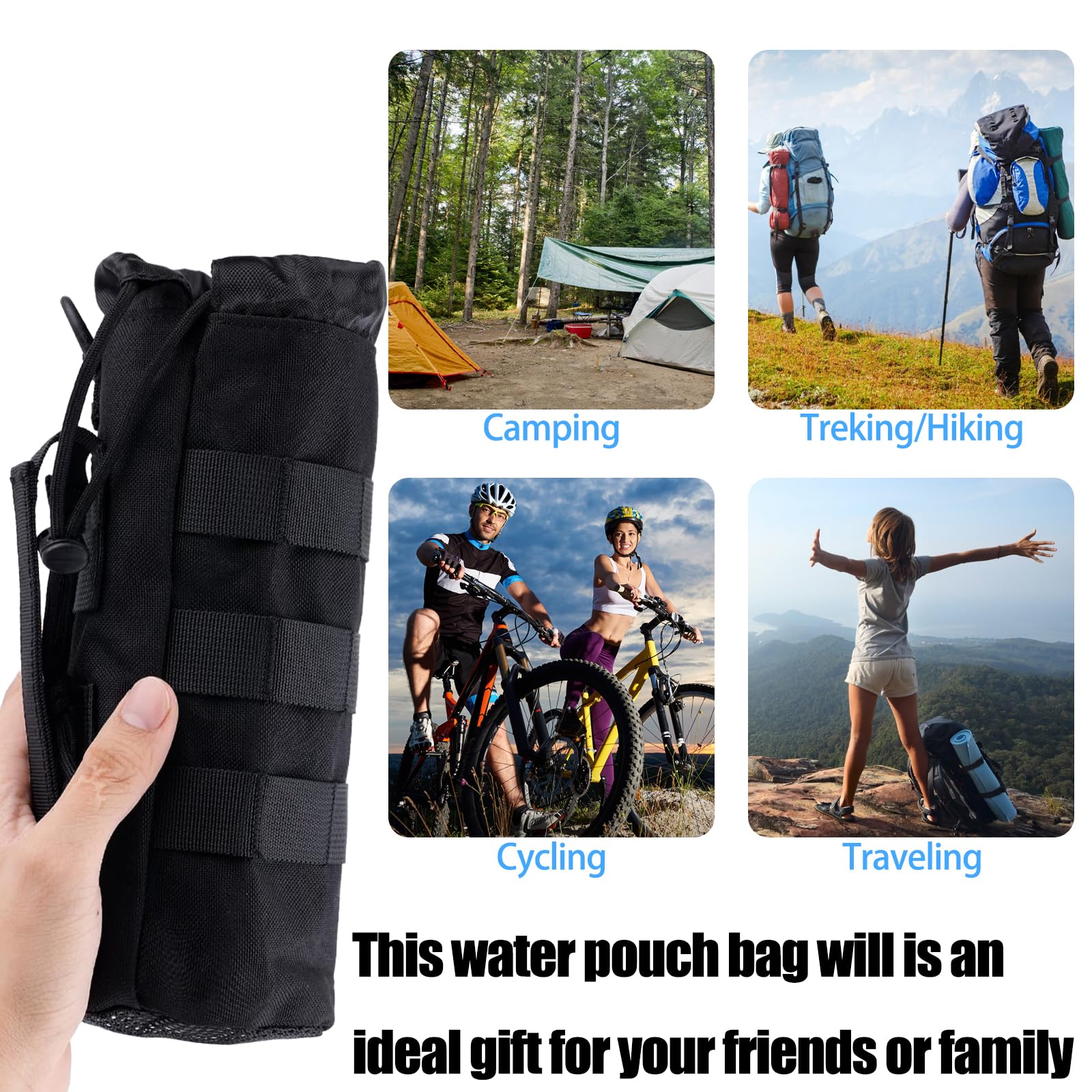 Immer deine Flasche griffbereit! Dieses 2er-Set MOLLE-Flaschenhalter aus robustem 1000D Nylon hält deine Wasserflasche sicher an deinem Rucksack, Gürtel oder Fahrrad. Mit federbelastetem Schnellverschluss für verschiedene Flaschendurchmesser und D-Ring zur zusätzlichen Sicherung. Das Netz-Bodendesign lässt Feuchtigkeit abtropfen. Super für Camping, Wandern, Jagd oder Outdoor-Aktivitäten. Kann auch Regenschirme oder Taschenlampen halten. Leicht, wasserabweisend und extrem langlebig. Mach deine Ausrüstung komplett und habe deine Getränke immer sicher dabei!