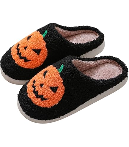 • FestiKiva Halloween Kürbis Hausschuhe - Flauschige Winterschuhe Für Unisex, Rutschfeste Sohle & Super Kuschelig
