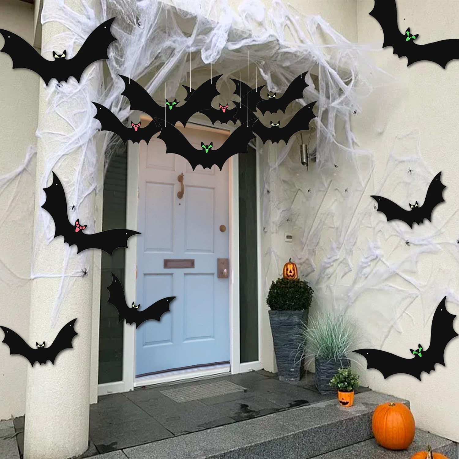 • 18 Stück Halloween Fledermäuse Dekoration - 3D Hänge Fledermäuse Für Garten Und Party