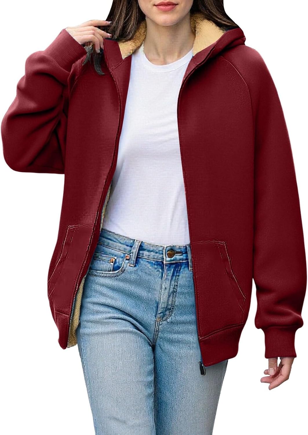 • Damen Fleecejacke Mit Kapuze - Teddyfutter Sweatjacke Herbst/Winter