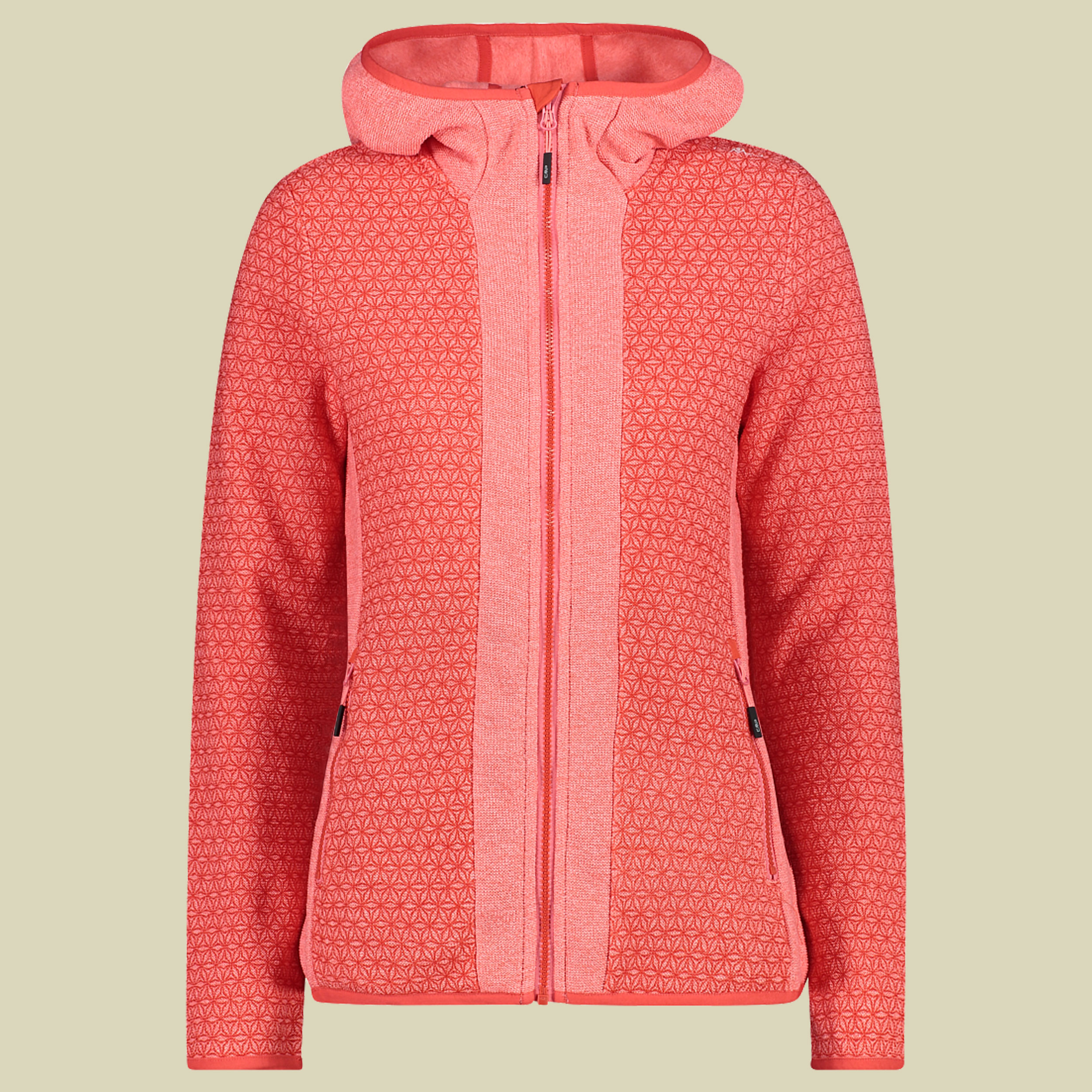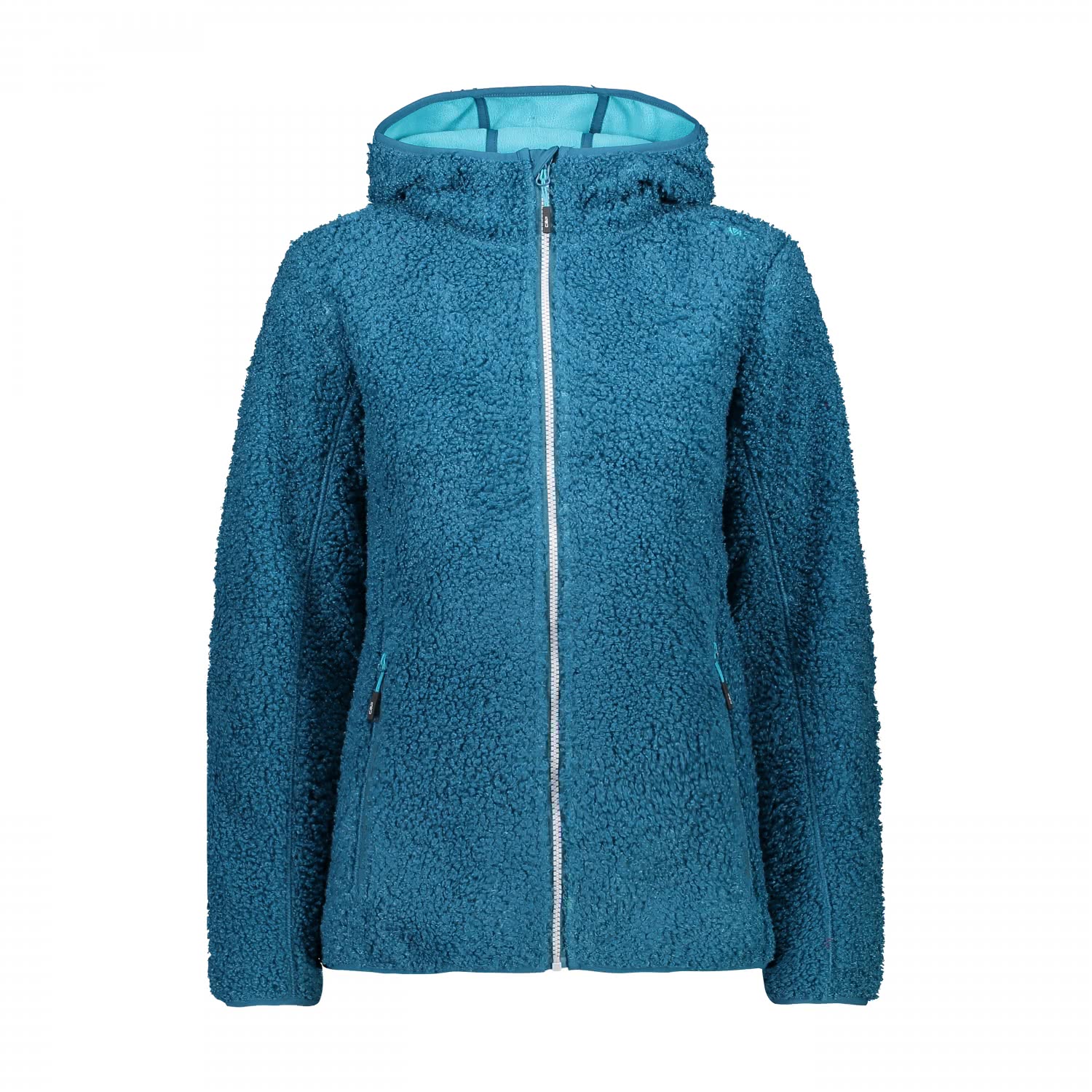 Perfekter Begleiter für jedes Abenteuer! Diese CMP Fleecejacke für Damen ist dein Go-To-Stück für Wanderungen, Stadtbummel oder einfach nur für gemütliche Tage. Das CMP Knit-Tech Material ist super weich und hält schön warm.\\n\\nPraktisch ausgestattet mit durchgehendem Reißverschluss, doppelten Seitentaschen und einer zusätzlichen Tasche am Arm mit Reißverschluss. Die Kapuze ist fest angenäht und hat elastische Bündchen - da bleibt keine Kälte rein!\\n\\nDu kannst sie als leichte Jacke an wärmeren Tagen tragen oder als Zwischenschicht wenn's richtig kalt wird. Die Passform ist modern und nicht zu weit - sitzt einfach perfekt. Das CMP Logo auf der Schulter rundet den Look ab.\\n\\nOb du nun bergsteigst oder nur zum Bäcker um die Ecke gehst - diese Jacke macht immer eine gute Figur. In verschiedenen Farben erhältlich passt sie zu allem in deinem Schrank. Italian Style meets Outdoor-Funktionalität - besser geht's nicht!