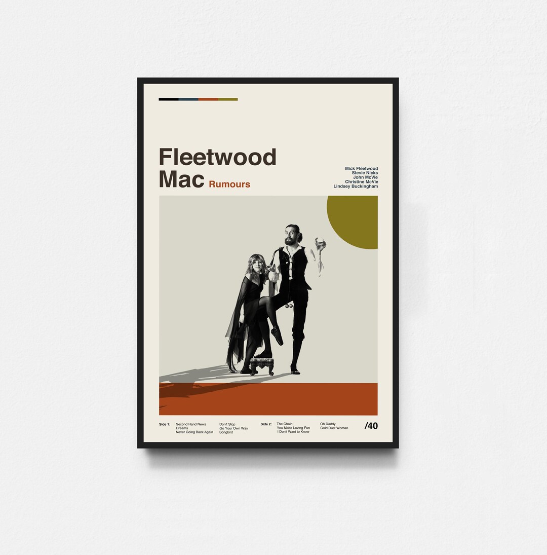 Hol dir den legendären Sound von Fleetwood Mac an deine Wand! Dieses coole Rumours Poster bringt Vintage-Charme in dein Zuhause. In 60x90 cm Größe - perfekt als Eyecatcher im Wohnzimmer, Schlafzimmer oder Büro. Hochwertiger Druck mit scharfen Details und lebendigen Farben. Auf robuste Leinwand gedruckt, die lange Freude garantiert. Ohne Rahmen - du kannst ihn ganz nach deinem Geschäft rahmen lassen. Perfekt für Musikfans und alle, die ihr Zuhause mit persönlichen Akzenten verschönern wollen. Einfach aufhängen und die besondere Atmosphäre genießen. Das Poster wird mit Liebe zum Detail handgefertigt - Qualität, die man sieht! Ideal als Geschenk für Musikliebhaber oder um deine eigenen vier Wände aufzuwerten. Tauche ein in die Welt des Classic Rock und mach deine Wände zu etwas Besonderem!