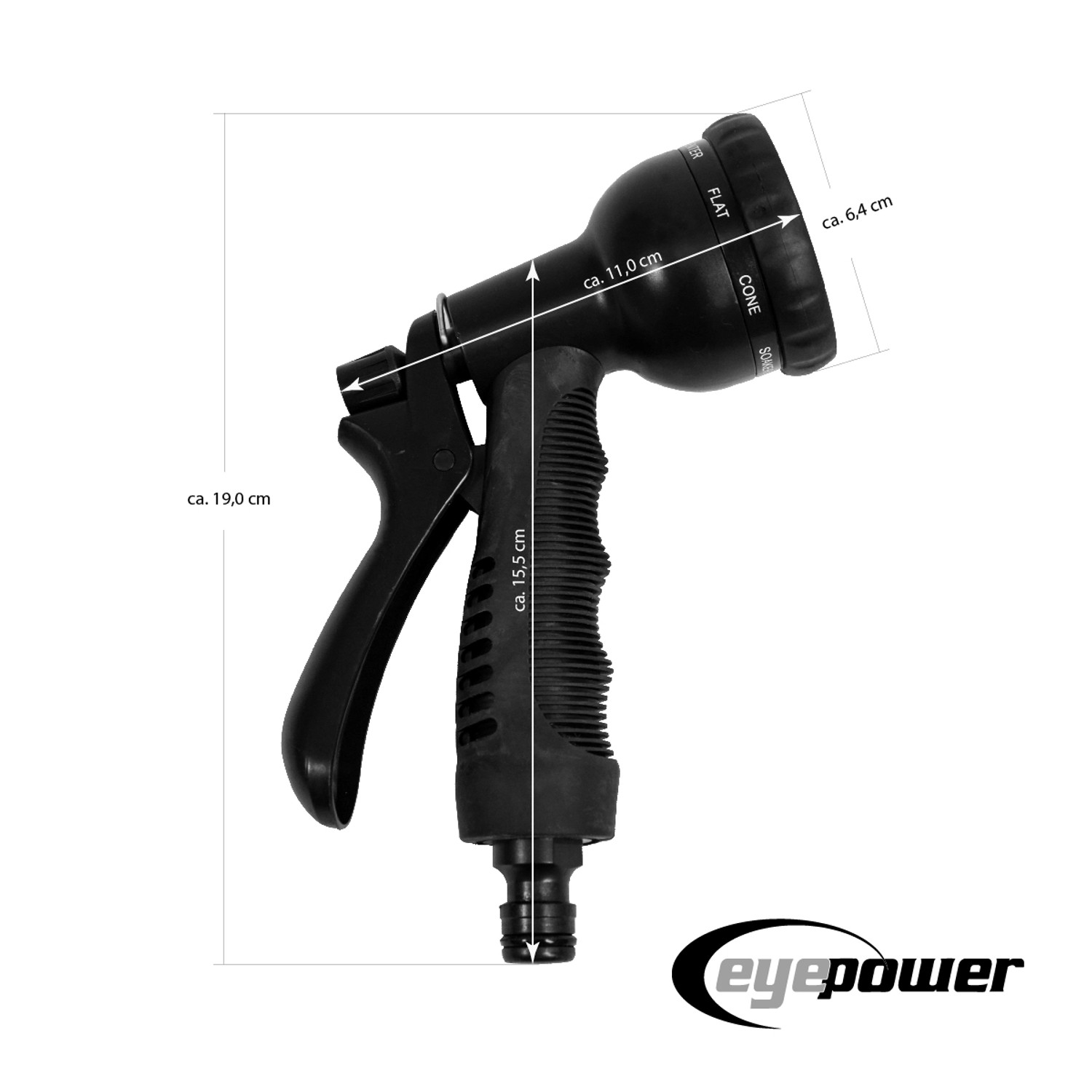 Im Set enthalten: Schlauch und praktische Brause mit 7 verschiedenen Strahlarten. Von sanftem Nebel für empfindliche Pflanzen bis kräftigem Strahl für die Reinigung - für jeden Zweck die richtige Einstellung. Mit 3/4 Zoll Anschluss für den Wasserhahn.