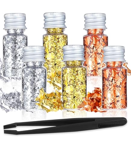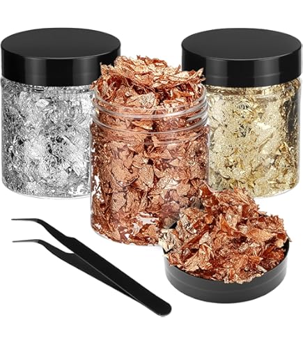 Verwandle alles in Gold! Dieses 3-Farben-Set mit Blattmetallflocken in Gold, Silber und Roségold bringt Glamour in deine Bastelprojekte. In praktischen Dosen (5,5x2x2cm) verpackt, mit Clip und Bürste für einfache Handhabung. Perfekt für Scrapbooking, Nageldesign, Geschenkverpackungen, Home Deco und Malerei. Wichtiger Hinweis: Nur für dekorative Zwecke, nicht essbar! Die hauchdünnen Flocken haften super auf Papier, Holz, Leinwand und Kunststoff. Lass deiner Kreativität freien Lauf!