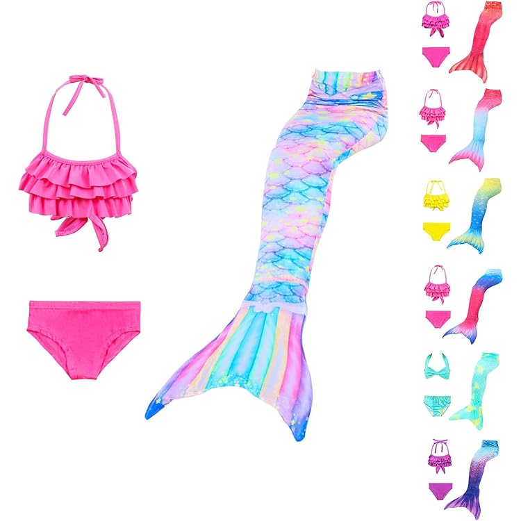 • NaLatia Meerjungfrau Flosse Badeanzug Set - 3-teiliges Kinder Cosplay Für Mädchen 3-13 Jahre
