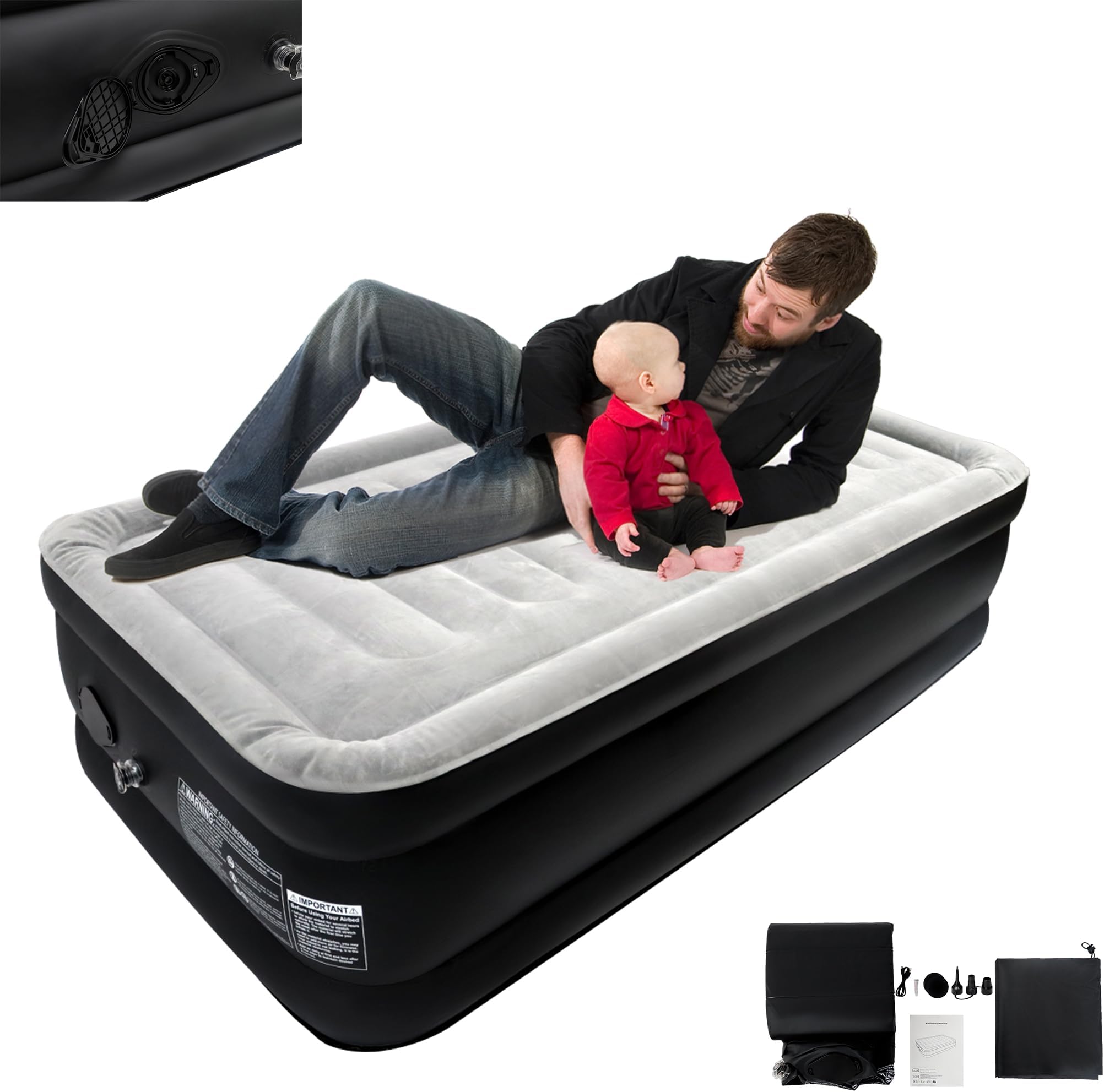 Reisen mit Kindern war noch nie so einfach! Dieses niedliche Flugzeugbett verwandelt jede Reise in ein Abenteuer. Aus hochwertigem PVC mit weicher Flock-Oberfläche ist es nicht nur bequem, sondern auch robust und lecksicher. Mit einer Tragkraft von 45 kg ist es für Kinder ab 3 Jahren geeignet. Die erhöhten Leitplanken und Sicherheitsgurte sorgen für maximale Sicherheit, während die Flugzeug-Kopfstütze für zusätzlichen Komfort sorgt. Inklusive Pumpe für schnelles Aufblasen - innerhalb weniger Minuten ist das Bett einsatzbereit! Nach Gebrauch einfach zusammenfalten und in der mitgelieferten Tragetasche verstauen. Perfekt für Flugreisen, Autofahrten, Zugfahrten oder Übernachtungen bei Oma. Maße: 22x25x8 cm (zusammengefaltet), Gewicht nur 1,05 kg - wirklich leicht zu transportieren. Mach deine nächste Reise stressfrei und schenke deinem Kind einen vertrauten Schlafplatz, wo auch immer ihr seid!