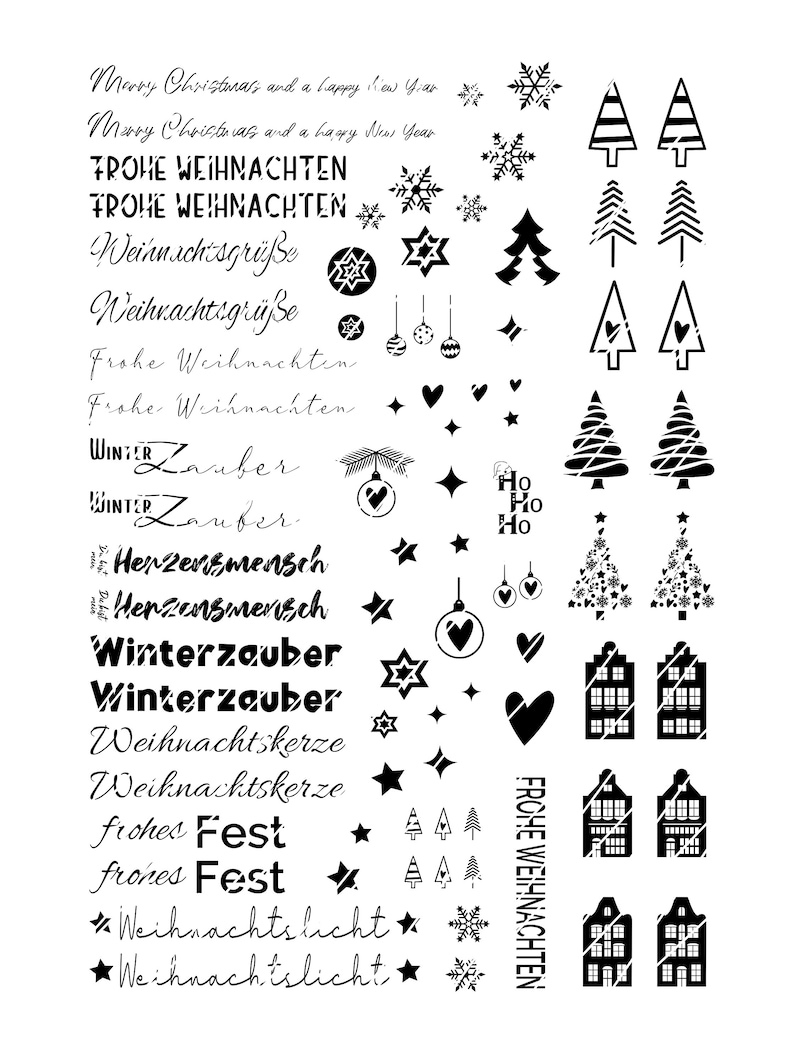 Weihnachtliche Stimmung selbst gemacht! Mit diesen 4 Blättern Kerzentattoo-Folie verwandelst du langweilige Kerzen und Tassen im Handumdrehen in festliche Hingucker. Über 150 verschiedene Weihnachtsmotive stehen zur Auswahl: niedliche Tannenbäume, verspielte Schneeflocken, lustige Rentiere und den Weihnachtsmann persönlich! Dazu kommen herzliche Sprüche wie 'Frohe Weihnachten' und 'Winterzauber'. Die Anwendung couldn't be simpler: Motiv ausschneiden, mit Wasser befeuchten und auf die glatte, trockene Oberfläche aufkleben. Schon haftet das Design perfekt! Besonders toll für Teelichter, Stabkerzen, Stumpenkerzen oder Glasvasen. Aber auch glatte Keramiktassen lassen sich damit wunderbar individualisieren. Perfekt für selbstgemachte Weihnachtsgeschenke - denn mit persönlichen Motiven machst du deinen Liebsten bestimmt eine Freude! Keine Sorge wegen der spiegelverkehrten Drucke auf den Folien: Sobald du sie auf die Kerze überträgst, erscheinen sie in der richtigen Ansicht. So wird jede Kerze zum kleinen Kunstwerk und sorgt für gemütliche Adventsstimmung.