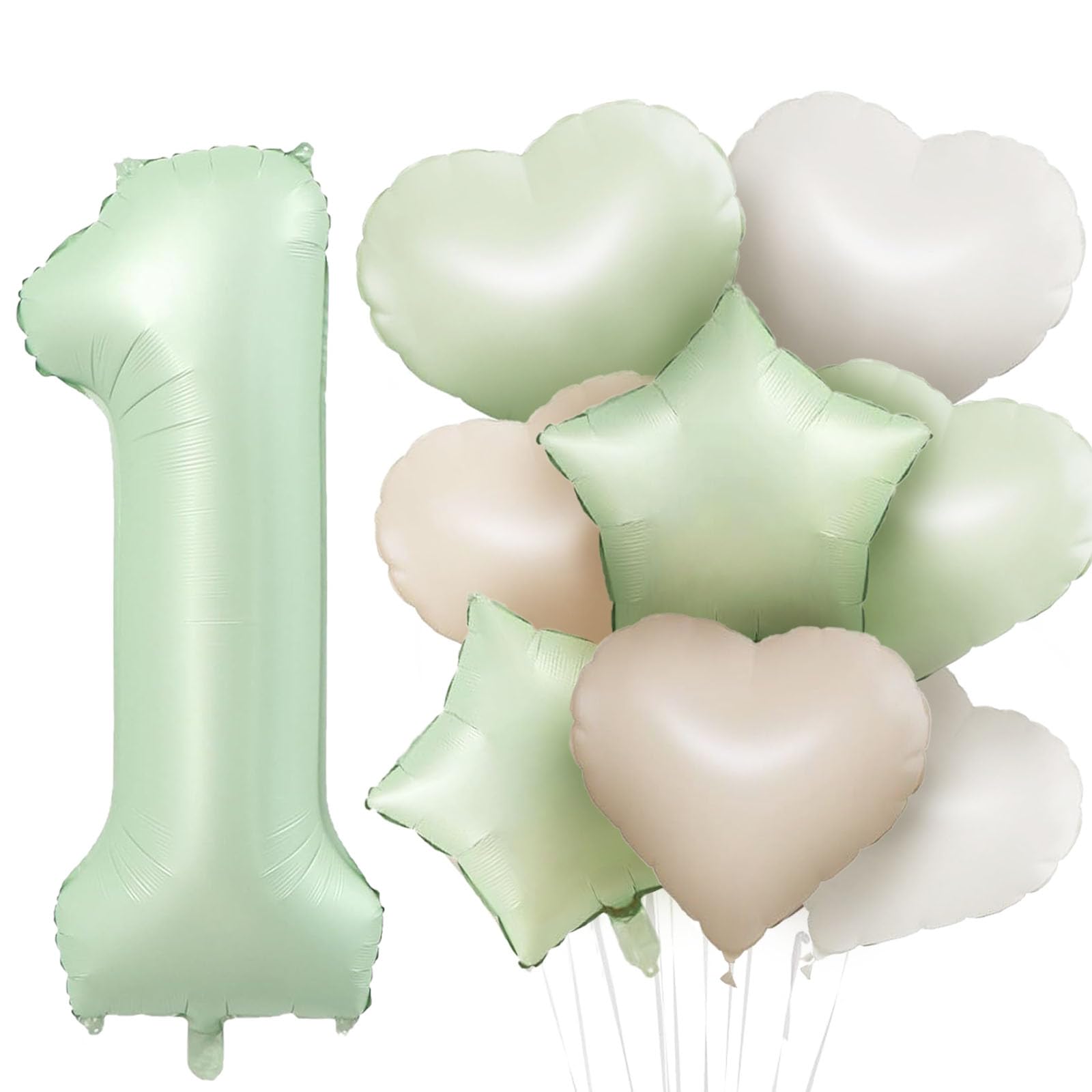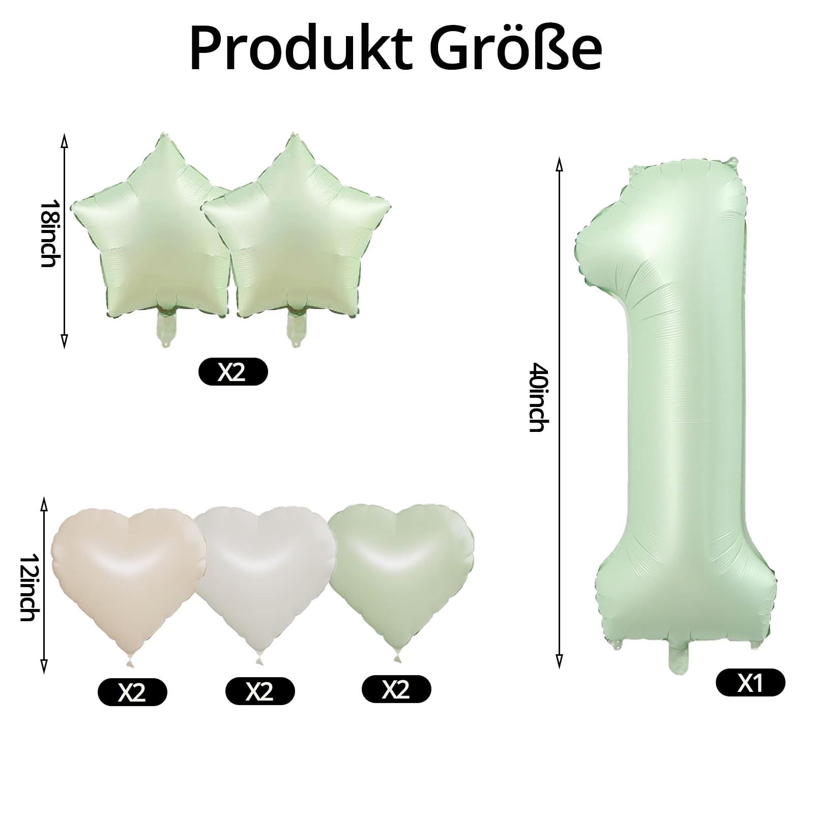 Wie süß! Dieser große 40 Zoll Folienballon mit der Zahl 1 in Salbeigrün - perfekt für den ersten Geburtstag deines Kindes! Im Set: eine Riesen-Zahl 1, vier salbeigrüne und vier cremefarbene Herzballons, plus Band und Strohhalm. Aus hochwertiger Aluminiumfolie, selbstverschließend, robust und ungiftig. Einfach mit Luft oder Helium aufblasen (nur zu 90%, sonst platzt er). Nach der Party vorsichtig Luft rausdrücken und wiederverwenden. Ideal für Baby-Shower, Valentinstag, Hochzeit oder Prinzessinnen-Party. Tipp: Farbe kann leicht vom Bild abweichen - bei Problemen melden, wir helfen within 24h!