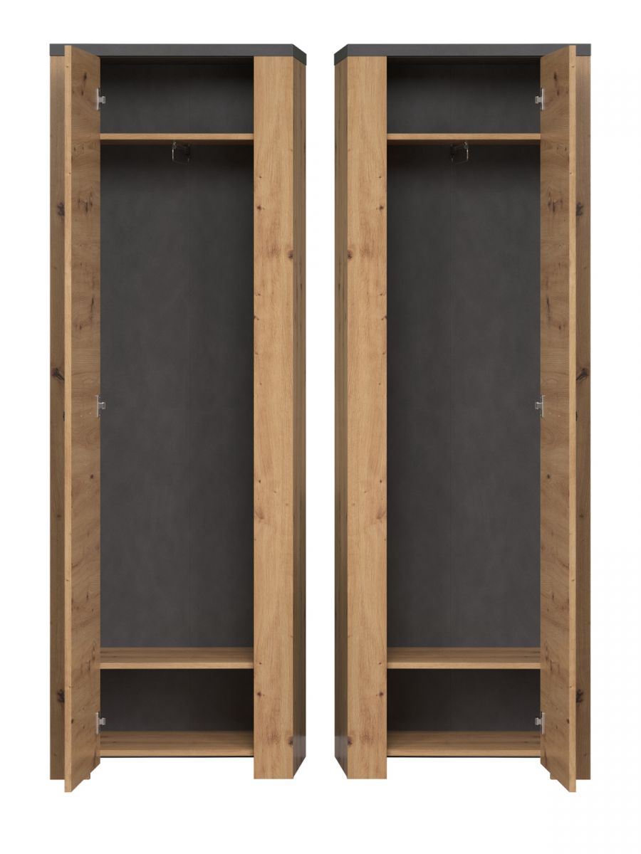 Endlich Ordnung im Flur! Dieser trendteam Garderobenschrank ist der absolute Platzwunder für deine Diele. Mit nur 62cm Breite und 199cm Höhe passt er auch in enge Flure und bietet trotzdem mega viel Stauraum für Jacken, Mäntel, Taschen und alles, was so im Eingangsbereich rumliegt. Das coole Artisan-Eiche Design in Kombination mit grauen Akzenten sieht total modern und gleichzeitig gemütlich aus. Das Highlight: Die ausziehbare Kleiderstange! Einfach rausziehen, Jacke aufhängen, reinschieben - so einfach war Ordnung halten noch nie. Pluspunkt: Eine praktische Hutablage oben drauf und ein Einlegeboden für Schuhe oder Taschen. Die Tür kannst du je nach Platz links oder rechts montieren, super flexibel! Die Melamin-Oberfläche ist robust, kratzfest und lässt sich easy mit einem feuchten Tuch reinigen. Kein lästiges Putzen mehr! Montage ist kein Hexenwerk - mit der Anleitung kriegst du das hin. Mach aus deinem Flur eine ordentliche Wohlfühloase!
