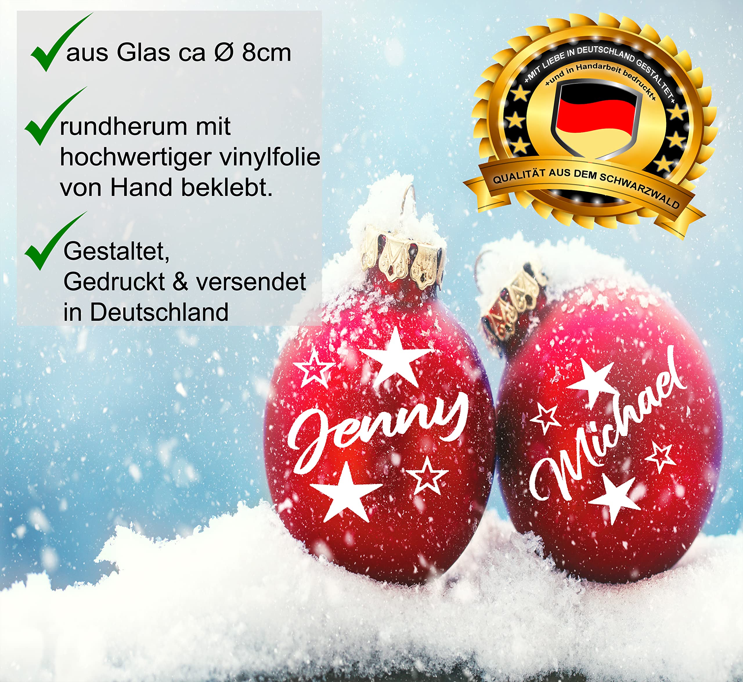 Weihnachtszeit ist Erinnerungszeit! Diese personalisierte Weihnachtskugel aus Echtglas macht deinen Christbaum zum absoluten Hingucker. 8cm groß, 2-seitig bedruckt - auf einer Seite dein Lieblingsfoto, auf der anderen der Wunschname. UV-Druck sorgt für leuchtende Farben, die lange halten. Jede Kugel ist ein Unikat! Aber Vorsicht: Glas kann brechen, also aufpassen bei Kindern und Tieren. Perfect als Geschenk oder für die eigene Deko! Produktdetails: 8cm Echtglas • 2-seitig bedruckt • Mit eigenem Foto & Namen • UV-Druck • Lange haltbare Farben • Einzigartiges Unikat • Achtung: Glas kann brechen • Perfekt als Geschenk