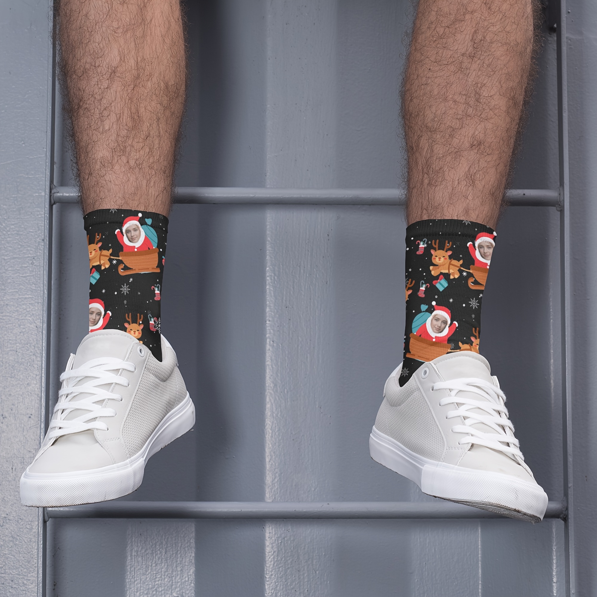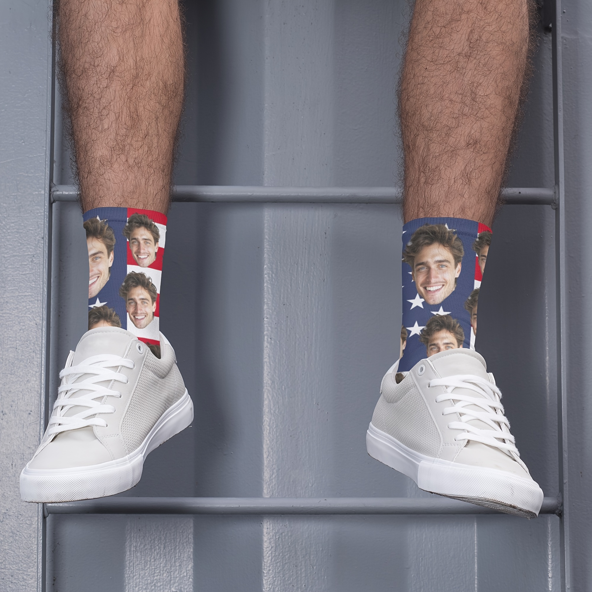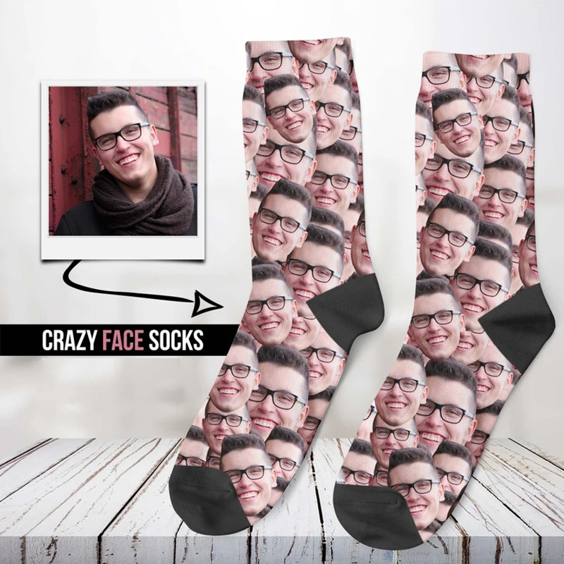 Wie wär's mit deinem Gesicht auf Socken? Das ist mal ein Geschenk, das garantiert für Lacher sorgt! Du kannst bis zu vier Fotos hochladen - von Familienmitgliedern, Freunden oder sogar deinem Hund. Die Socken gibt's in 11 knalligen Farben und drei Größen (S/M/L). Die Druckqualität ist erstklassig: volle Fläche bedruckbar, keine Verzerrungen, farbecht und abriebfest. Das Material (95% Polyester, 5% Elasthan) ist superweich und dehnbar - sitzt wie angegossen. Mit Air-Mesh-Belüftung und verstärkten Bereichen an Ferse und Zehen für extra Langlebigkeit. Perfekt als Geschenk zu Weihnachten, Geburtstag, Vatertag oder einfach so. Mach deine Liebsten glücklich mit diesem persönlichen und lustigen Präsent!