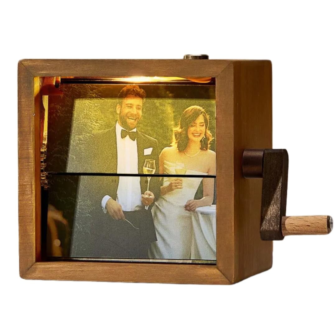 Erwecke deine Fotos zum Leben! Dieses personalisierte Flipbook ist wie ein Daumenkino für deine schönsten Momente. Aus Holz, 9x9x7,5 cm groß, mit Handkurbel und LED-Beleuchtung. Wähle 8 oder 16 Fotos und füge persönliche Musik hinzu - das System synchronisiert alles. Perfekt für Valentinstag, Geburtstage oder Jahrestage. Einfach Fotos hochladen, Spotify-Link angeben und bestellen. Mit sanftem LED-Licht für gemütliche Atmosphäre. Ein einzigartiges Geschenk für Freunde, Partner oder Familie. Mach Erinnerungen unvergesslich!