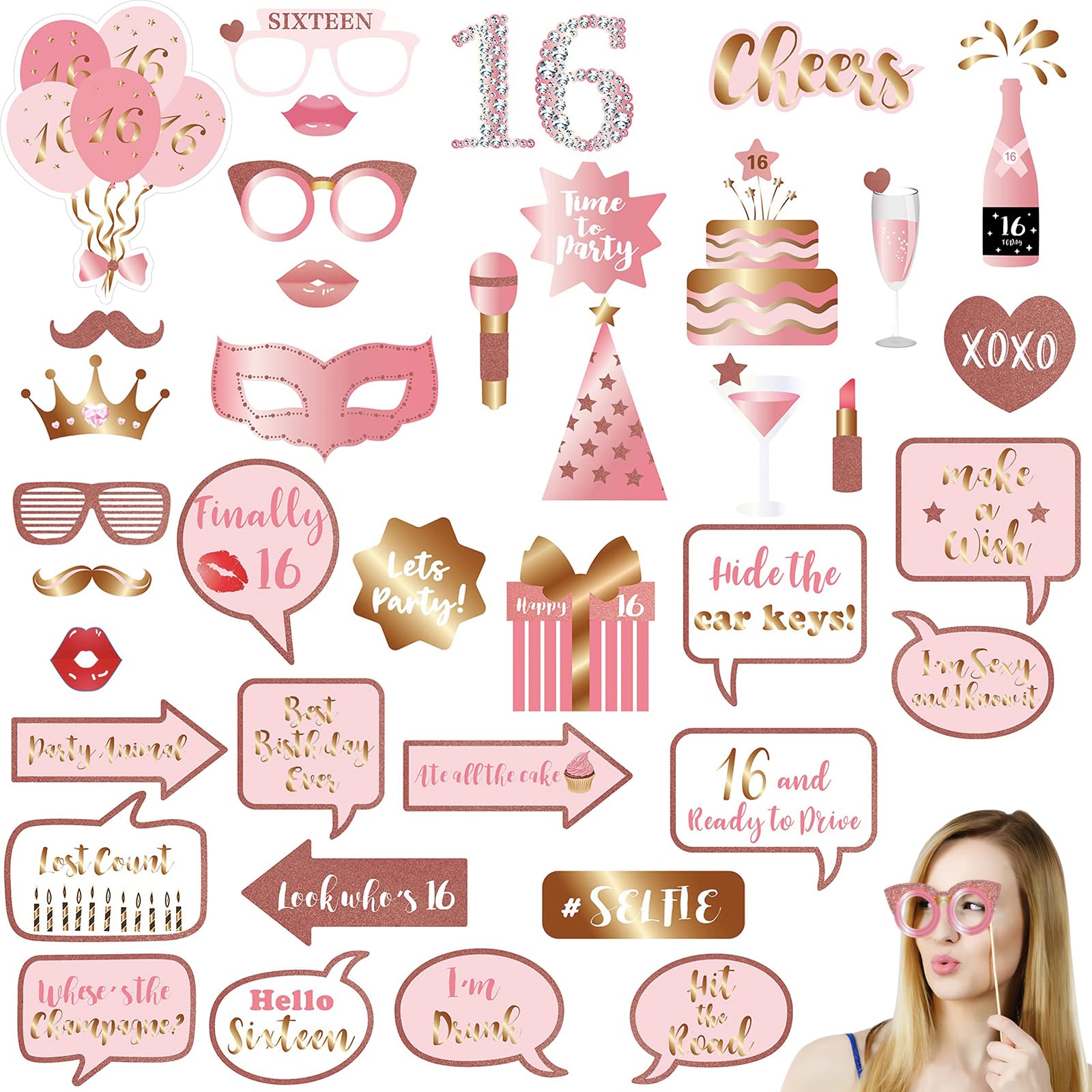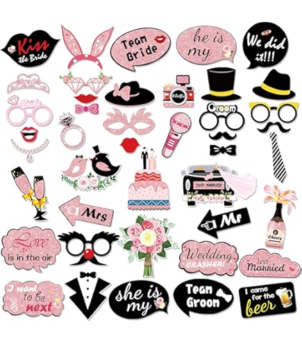 Mega dieses 33-teilige Fotobox Set in trendigem Roségold! Enthalten sind total viele lustige Requisiten: Brillen, Lippen, Blumen, Luftballons, Hüte, Kronen und coole Schriftzüge. Alles aus stabilem Karton mit hochwertigem Druck und Roségold-Glitzer - sieht einfach edel aus! Mit dabei: 34 Bambusstäbe und 40 Klebeblätter zum einfachen Zusammenbau. Einfach Stab ankleben und schon kann die Foto-Spaß-Party losgehen! Perfekt für Junggesellinnenabschiede, Geburtstage, Hochzeiten oder jede andere Feier. Die Requisiten ohne Text sind universell einsetzbar, einige haben 'Happy Birthday' Aufschrift. Macht jede Party zum unvergesslichen Erlebnis! Einfach auspacken, zusammenstecken und loslegen - die Gäste werden's lieben!