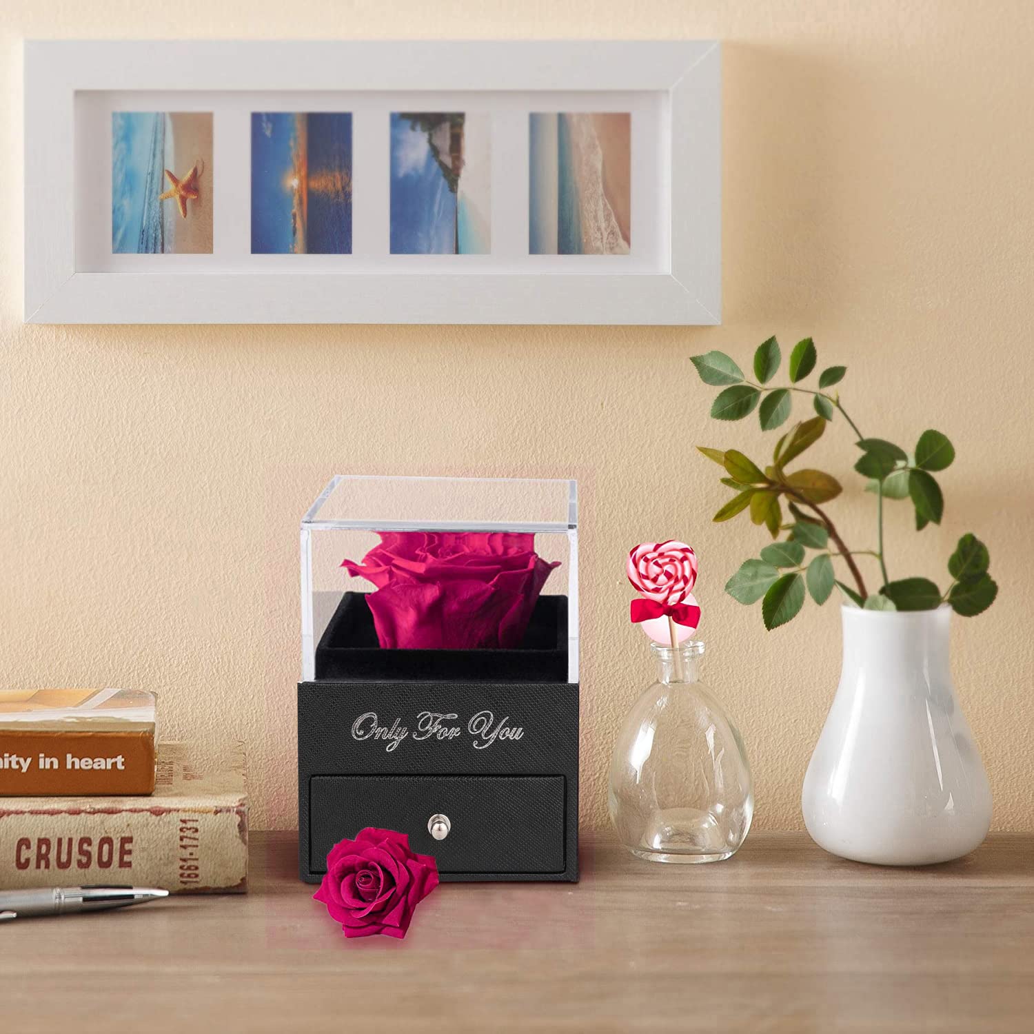 Die echte Rose wurde mit ungiftiger Technologie konserviert - sie welkt nie, verblasst nicht und benötigt keine Pflege. Eingebettet in einer kristallklaren Acryl-Box, die bruchsicher und staubdicht ist.