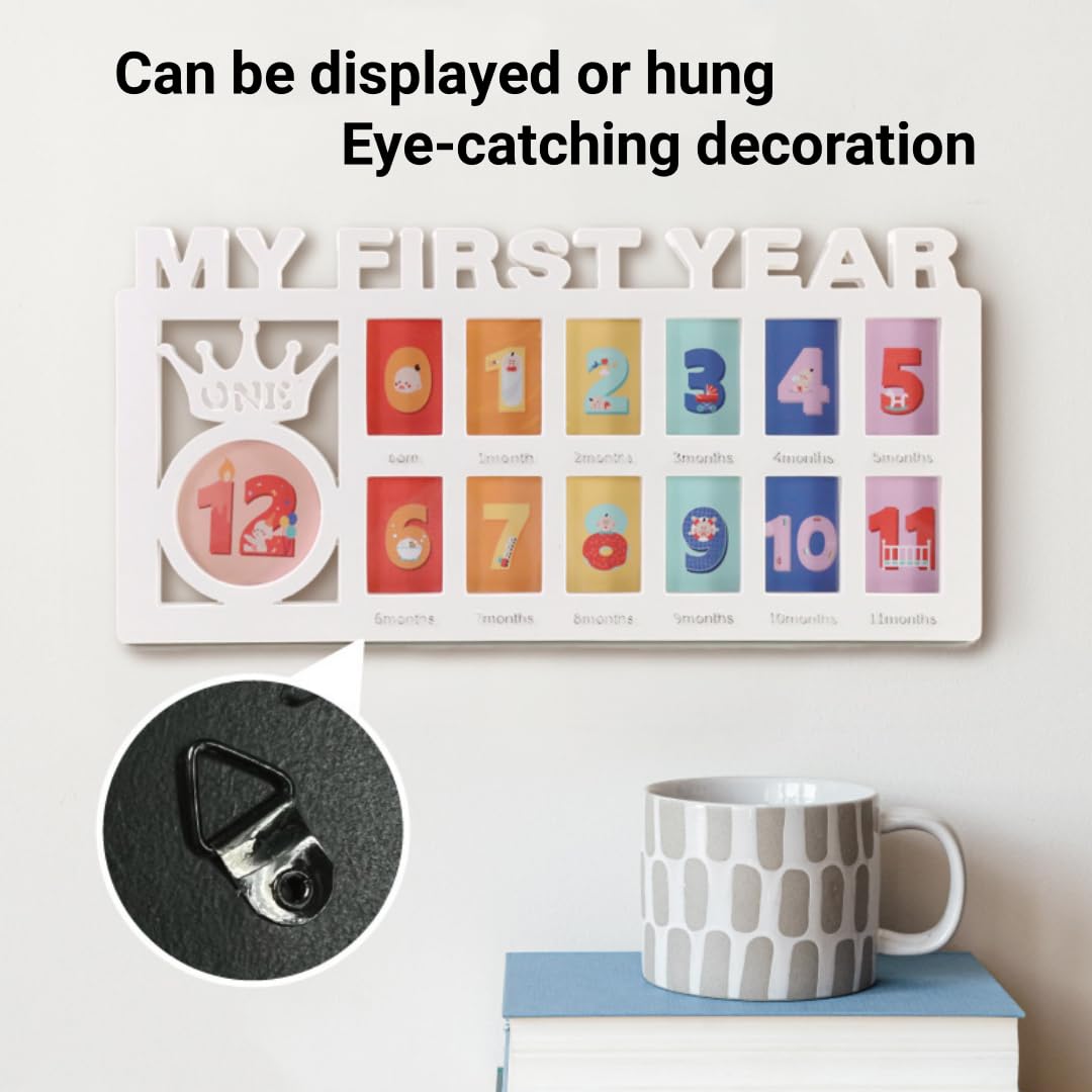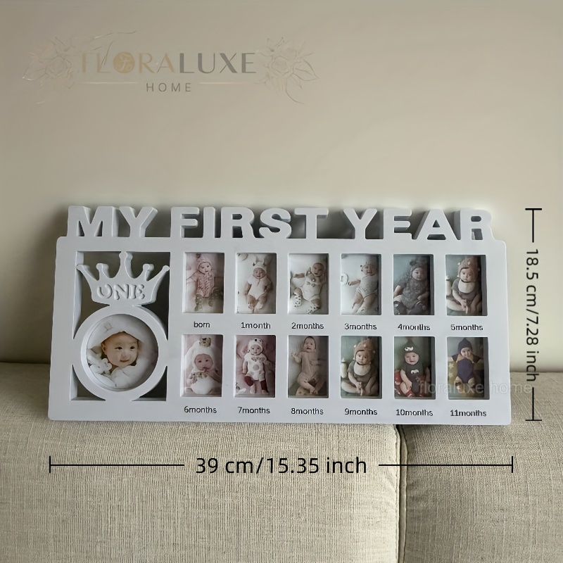 Oh wie süß! Dieser Baby-Fotorahmen ist perfekt, um das erste Jahr deines Kleinen festzuhalten. \\n\\n• Maße: 39 x 18,5 x 1,5 cm (15 x 7,3 x 0,6 Zoll) \\n• Farbe: Rosa \\n• 12 Bildöffnungen \\n• Material: Kunststoff \\n\\nHalte jeden Monat ein neues Foto fest und sieh dein Baby wachsen! Vom Neugeborenen bis zum ersten Geburtstag - alle besonderen Momente an einem Platz. \\n\\nDas Beste: Der Rahmen hat einen Standfuß und kann auch aufgehängt werden. Super flexibel fürs Kinderzimmer, Wohnzimmer oder als Geschenk! \\n\\nHochwertig verarbeitet, stabil und langlebig - ein Erinnerungsstück für die Ewigkeit. \\n\\nPerfekt als Geschenk für: \\n• Junge Eltern \\n• Großeltern \\n• Babypartys \\n• Taufe \\n\\nMach das erste Jahr deines Babys unvergesslich - dieser Rahmen wird zur wertvollen Erinnerung!