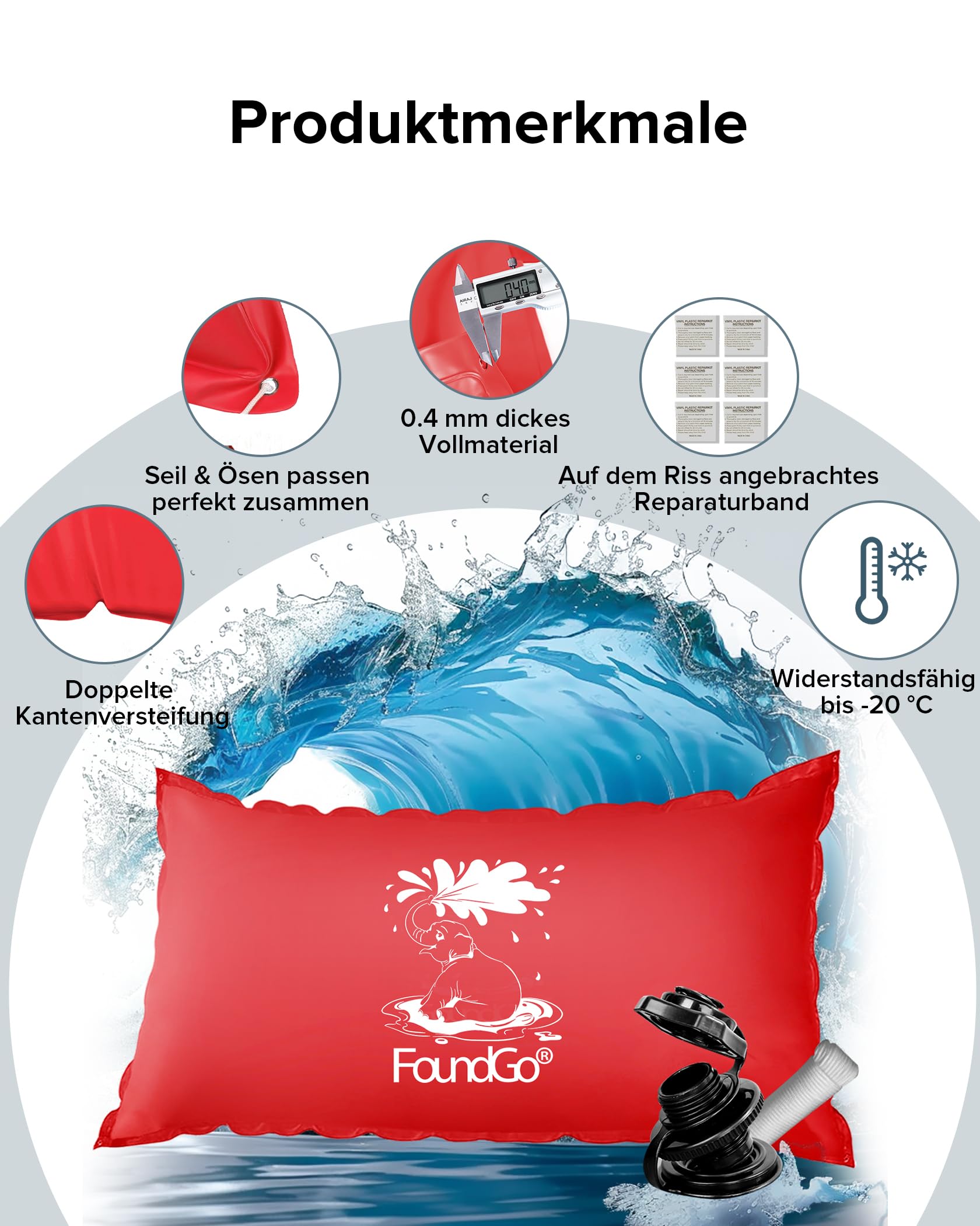 • FoundGo Poolkissen Winter XXL 2x4m - 0,4mm Stark Mit Seil Und Reparaturset