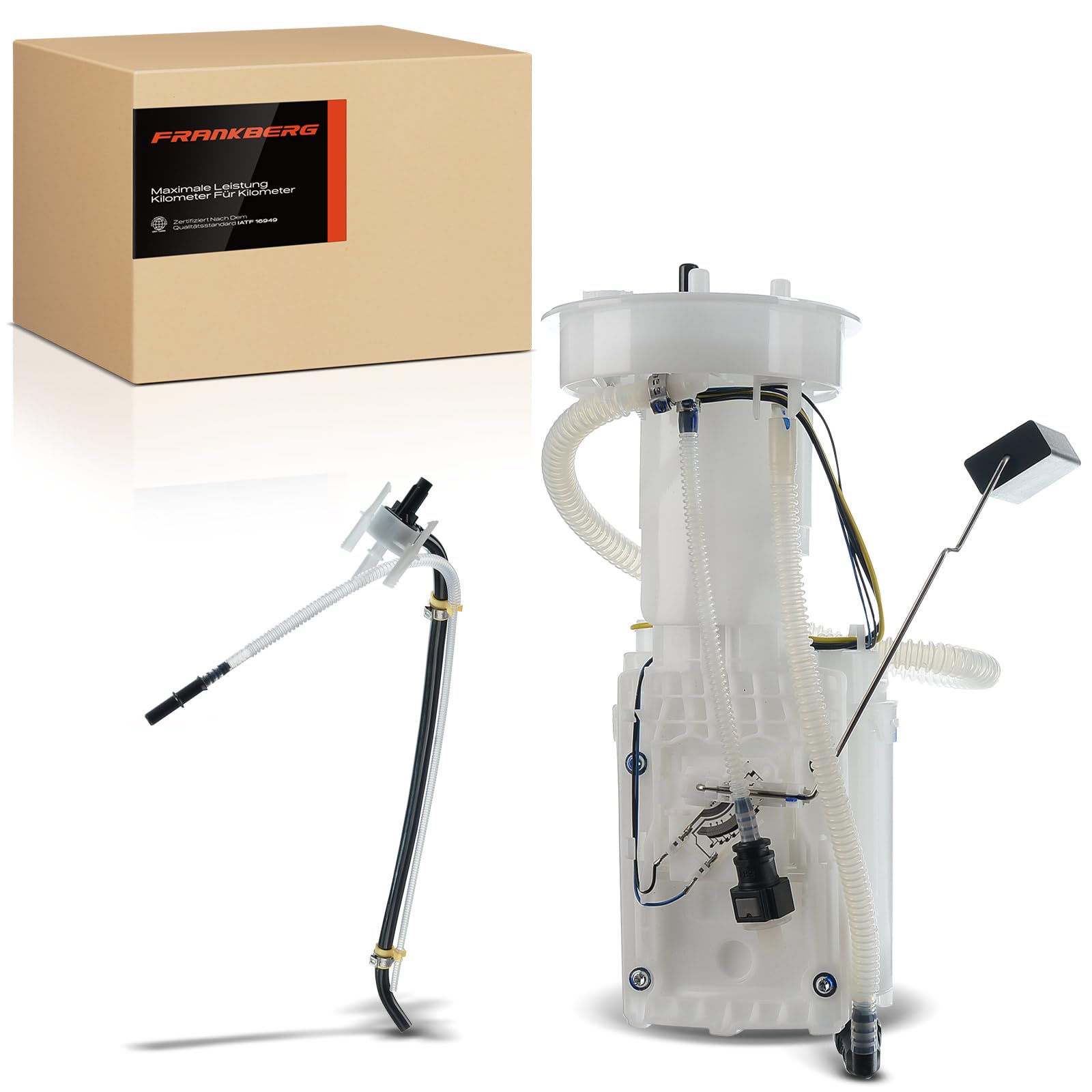 Diese hochwertige Frankberg Kraftstoffpumpe ist die perfekte Lösung für deine Mercedes M-Klasse W164 oder GL-Klasse X164! Als 5-polige Diesel-Kraftstoffpumpe ohne Drucksensor ersetzt sie die Originalteile FG2173 und 1644700394. Bevor du bestellst, prüfe unbedingt die Kompatibilität über die 'Amazon confirmed fit' Funktion - entweder mit HSN/TSN oder durch Eingabe von Modell, Plattform und Hubraum. Nur bei grüner 'Dies passt'-Anzeige bestellen! Die Pumpe wird unter streng kontrollierten Produktions- und Testverfahren gefertigt und bietet hervorragende Leistung bei stabiler Kraftstoffversorgung. Technische Daten: 5 Steckkontakte, für Dieselkraftstoff, elektrischer Betrieb mit 12V, Betriebsdruck 3 bar, Fördermenge 190 l/h. Die Abmessungen betragen 277 mm Höhe und 160 mm Breite bei einem Auslass-Durchmesser von 7,89 mm. Passt für verschiedene Modelle der M-Klasse W164 (ML 280 CDI, ML 300 CDI, ML 320 CDI, ML 350 CDI, ML 420 CDI, ML 450 CDI) und GL-Klasse X164 (GL 320 CDI, GL 350 CDI, GL 420 CDI, GL 450 CDI) aus den Baujahren 2005-2012. Das Modul enthält Pumpeneinheit, Tankgeber und Dichtung, aber keinen Filter. Vor dem Einbau unbedingt die Anzahl der Pins, das Vorhandensein des Pumpenkerns sowie Druck- und Füllstandssensor prüfen, um Fehlkäufe zu vermeiden. Eine zuverlässige und langlebige Alternative zum teuren Originalteil, die deinen Mercedes wieder zuverlässig in Fahrt bringt!
