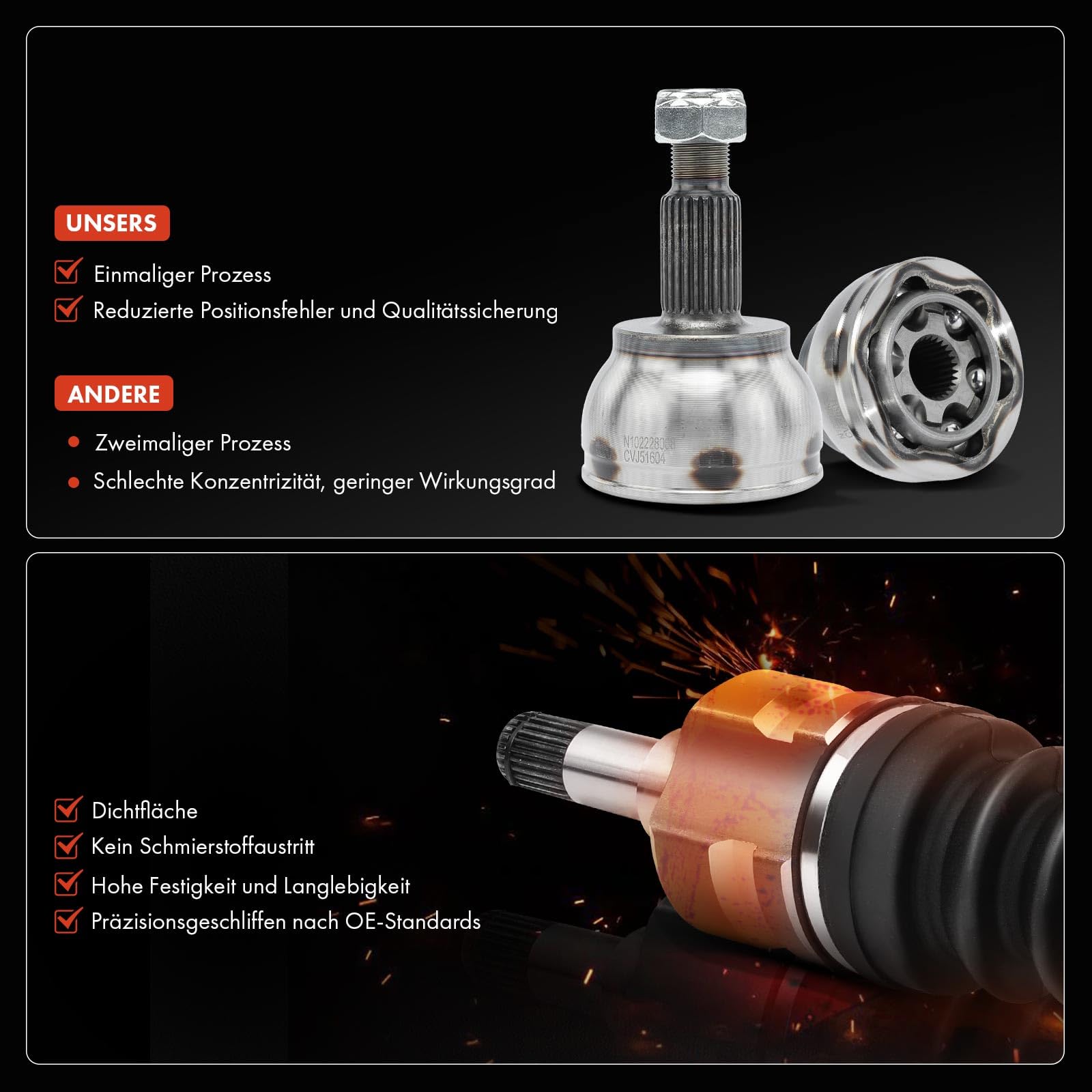 Achtung Mercedes-Fahrer! Dieser Frankberg Gelenksatz für die Vorderachse ist die perfekte Lösung für deine A-Klasse W169 oder B-Klasse W245. Kompatibel mit zahlreichen Modellen von A150 bis A200 und B150 bis B200 mit 1.5L bis 2.0L Motoren. Technische Daten: Länge ca. 130mm, Innen- und Außenverzahnung 25, Dichtringdurchmesser ca. 59,9mm. Einfache Installation als direkter Ersatz für dein defektes Teil. Passt für viele OEM-Nummern inklusive 1693604372, 1693604472 und anderen. Wichtig: Vor dem Kauf unbedingt prüfen, ob der Gelenksatz zu deinem spezifischen Fahrzeugmodell passt! Verwende dazu die Vergleichsnummern oder konsultiere deine Fahrzeugpapiere. Ein qualitätsgeprüftes Teil, das den originalen Standards entspricht - für sicheres und komfortables Fahren. Lieferumfang: 1x Gelenksatz, sofort einsatzbereit!
