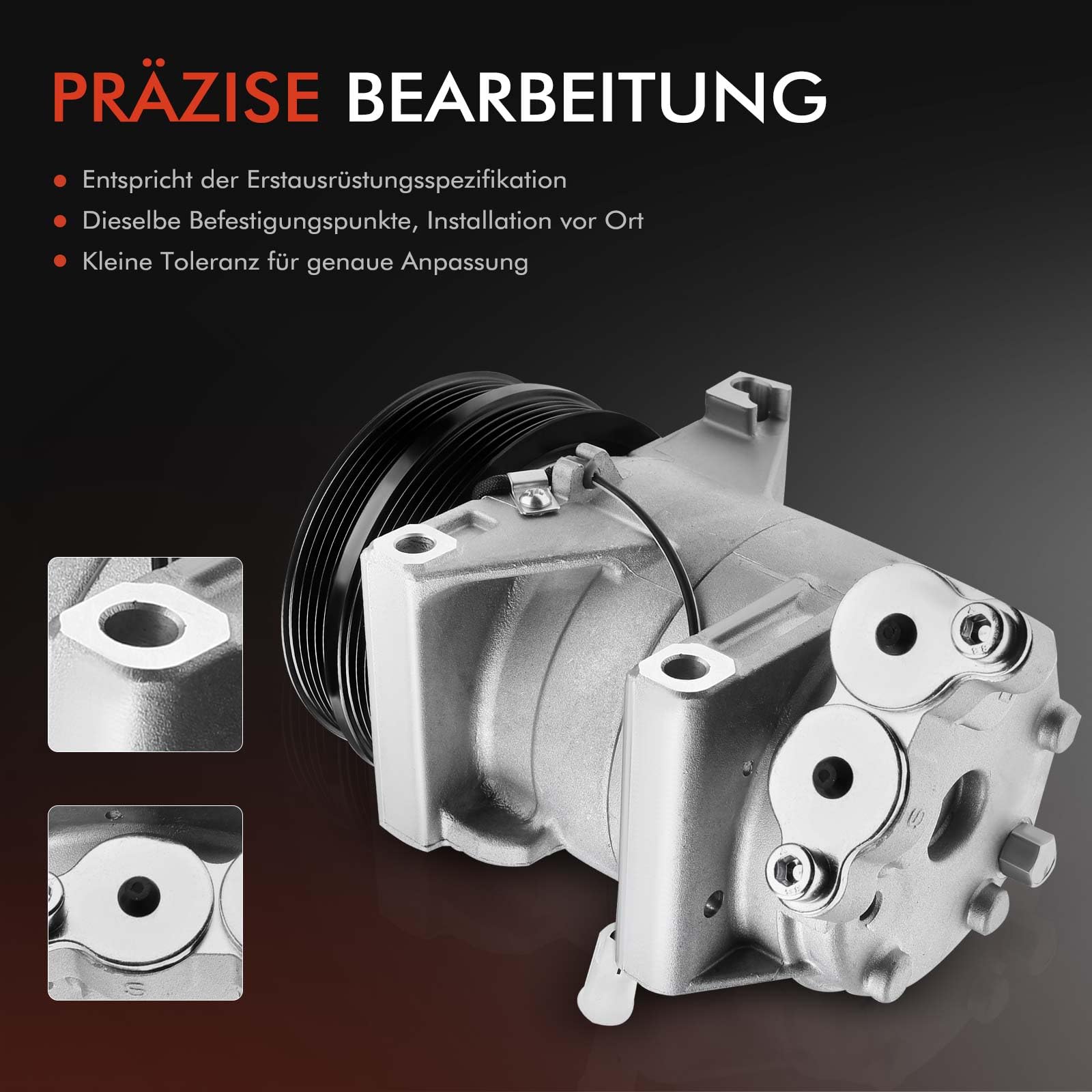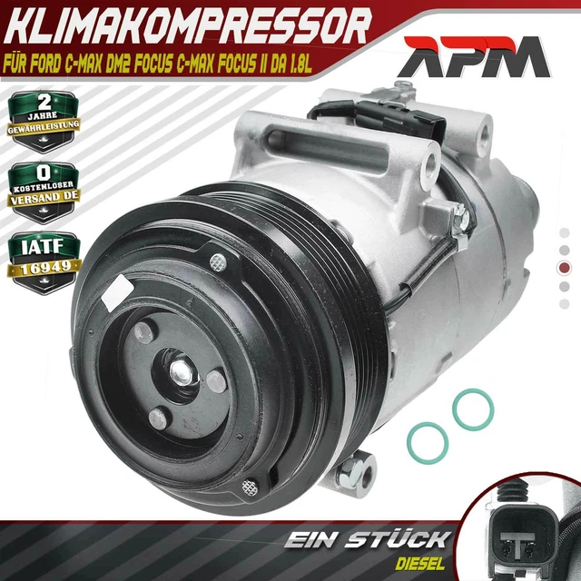 Deine Klimaanlage läuft wieder kalt! Dieser Frankberg Klimakompressor passt für Ford Focus II/III, C-Max, Volvo C30/S40/V50 uvm. Schon mit 180ml PAG46 Öl vorbereift - spart Zeit bei der Installation. Kompatibel mit R134a und R1234yf Kältemittel. 2-polig, 12V, 4 Rippen, 108,5mm Riemenscheibe. Aus hochfestem Stahl, korrosionsbeständig. Wichtig: Vor Kauf unbedingt Kompatibilität prüfen! Entspricht originalen Spezifikationen für perfekte Passform. Mach deine Sommerfahrten wieder angenehm kühl. Ein zuverlässiger Kompressor für viele Jahre - jetzt bestellen und die Hitze vergessen!