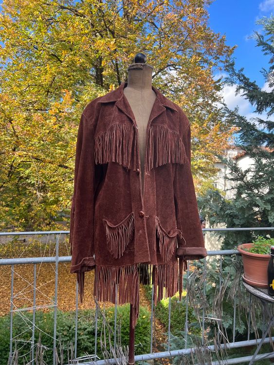 Kombiniere die Jacke mit engen Jeans und Stiefeln für den echten Cowboy-Look. Oder trag sie über einem Blumenkleid für den Hippie-Style. Sie passt auch super zu Lederhosen oder Jeans-Shorts - total vielseitig!