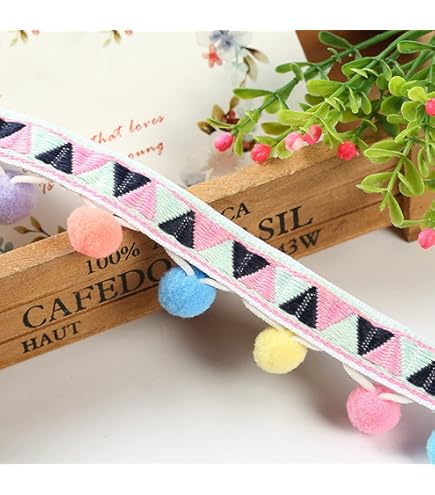 • AHANDMAKER Pom Pom Band - 5 Meter Fransenband In Ethnischem Design Für DIY-Projekte