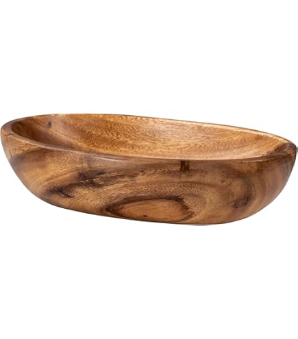 Echte Naturholz-Schönheit! Diese massive Schale aus Akazienholz hat einen Durchmesser von 15cm und ist 7cm hoch. Jedes Stück ein Unikat mit individueller Maserung. Die geölte Oberfläche betont die natürliche Holzstruktur und schützt gleichzeitig. Perfekt für Nüsse, Obst, Deko oder als Sammelschale. Auch ideal für LARP, Mittelalter-Events oder rustikale Tischdekoration. Fühlt sich angenehm an und verbreitet warme, natürliche Atmosphäre. Ein zeitloses Stück, das in jeder Wohnung gut aussieht. Pflegeleicht und langlebig - ein Begleiter für viele Jahre!