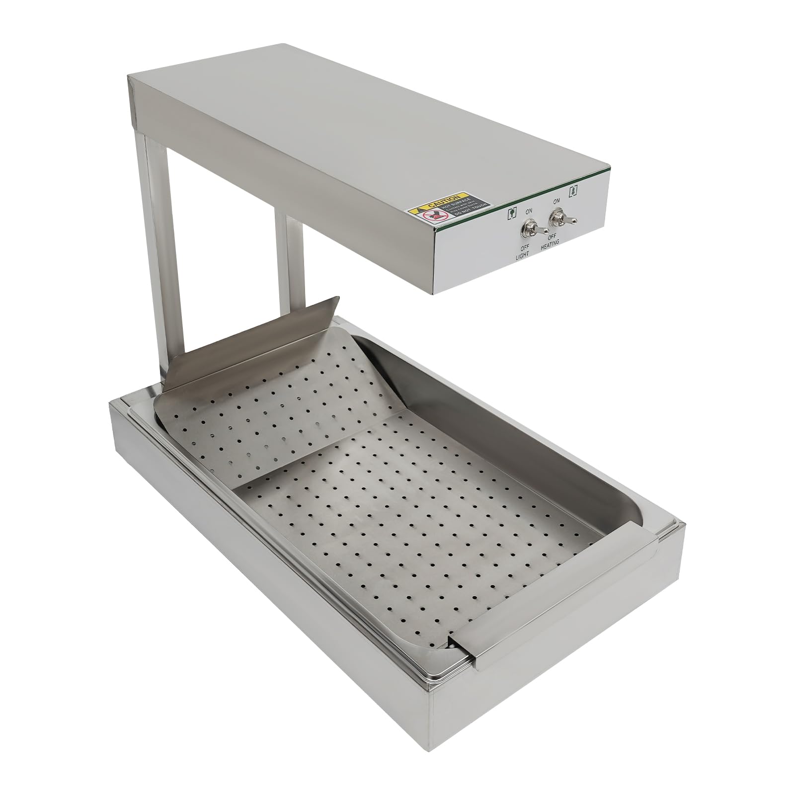 Stell dir vor, du könntest Pommes frites, frittiertes Huhn, Zwiebelringe und sogar Pizza immer perfekt warm und knusprig halten - genau das schafft dieser DSYOGX Pommes Frites Wärmer! Mit stolzen 750 Watt Leistung heizt das Teil super schnell auf und die U-förmige Infrarot-Heizröhre verteilt die Wärme gleichmäßig. Die integrierte 45W Wolfram-Lampe sorgt für dieses verführerische warme Licht, das die Speisen einfach unwiderstehlich aussehen lässt. Aus hochwertigem 201 Edelstahl gefertigt, ist der Wärmer extrem langlebig, hitzebeständig und pflegeleicht. Die vier rutschfesten Gummifüße schützen deine Theke vor Kratzern und sorgen für stabilen Stand. Mit den Maßen 56x33x46,5cm findet er auf jeder Arbeitsfläche Platz. Das coole offene Design und die praktische Schaufel machen das Servieren zum Kinderspiel - einfach die Pommes in Tüten, Boxen oder Schüsseln umfüllen! Perfekt für Bäckereien, Imbisse, Cafés, aber auch für deine nächste Party, Kirmes oder Grillfeier. Die separaten Schalter für Heizung und Licht sind clever platziert - weit weg von der Hitzezone für mehr Sicherheit. Die Lampe ist übrigens explosionsgeschützt und hitzebeständig. Mit dem mitgelieferten Abtropfblech, der Pfanne und der englischen Anleitung bist du sofort startklar. Ein echter Game-Changer für jeden, der Essen professionell präsentieren will!