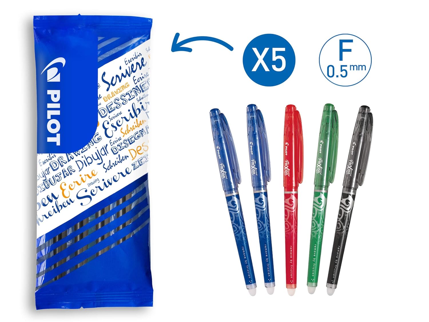Mensch, diese Pilot Frixion Stifte sind ja mal genial! Die Tinte ist radierbar - einfach mit der integrierten Radiergummispitze über die Schrift fahren und sie verschwindet wie von Zauberhand! Im 5er-Set in Blau, mit extrafeiner 0,5mm Nadelspitze für präzises Schreiben. Der weiche Gummigriff liegt super angenehm in der Hand und ermüdet nicht bei längerem Schreiben. Perfekt für Notizen, Skizzen oder Tagebücher wo man mal was korrigieren will. Die Stifte sind nachfüllbar mit Pilot Frixion Point BLSFR5 Minen - also auch nachhaltig! Ob für die Schule, Uni, Büro oder privat - diese Stifte machen einfach Spaß! Die radierbare Geltinte hinterlässt keine Rückstände und das Papier bleibt sauber. Einfach ein cleveres Schreibgerät das in keiner Federmappe fehlen sollte!