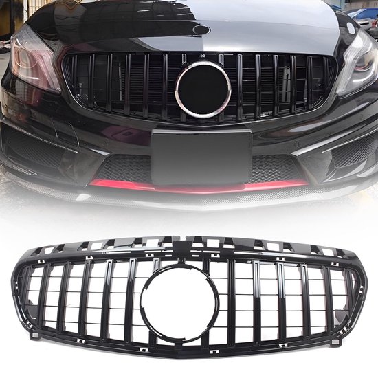 Verleiht eurer Mercedes A-Klasse W176 (Facelift 2015-2018) einen sportlichen Look mit diesem glänzend schwarzen Kühlergrill! Im modernen GT-Design passt er perfekt zu A45 AMG Modellen. Aus robustem ABS-Kunststoff gefertigt, schützt er den Motor vor Steinen und Schmutz. Das aerodynamische Design reduziert den Luftwiderstand und spart dabei sogar Sprit. Einfache Installation - einfach den alten Grill entfernen und den neuen einsetzen. Maße: 982 x 275 mm. Der glänzende Schwarzton verleiht eurem Auto sofort ein hochwertigeres Aussehen. Professionelle Montage wird empfohlen, aber mit etwas Geschick kriegt das auch ein Hobby-Schrauber hin. Macht aus eurer A-Klasse einen echten Hingucker!