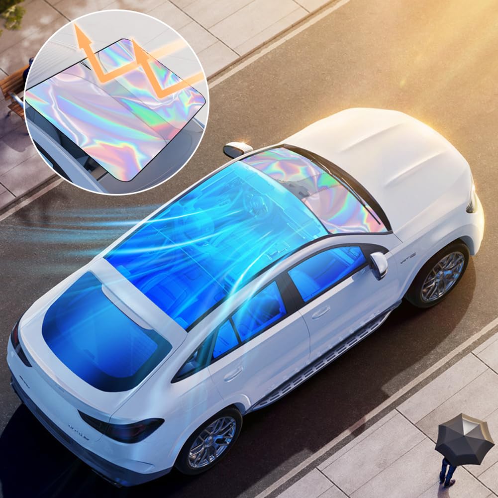 Endlich kein Backofen-Auto mehr im Sommer! Dieser praktische Sonnenschutz für die Frontscheibe sorgt für angenehme Temperaturen selbst bei heftigster Hitze. Einfach auf die Windschutzscheibe legen - dank des elastischen Stahlrahmens hält er perfekt und lässt sich blitzschnell zusammenfalten. Die Maße von 145x80 cm passen ideal für die meisten SUVs und größeren PKWs. Das robuste Sonnengewebe blockt UV-Strahlen effektiv ab und schützt dein Auto vor Überhitzung. Perfekt für: • Tägliches Pendeln • Urlaubsreisen • Parken in der prallen Sonne • Als Geschenk für Autofans Besonderheiten: • Wiederverwendbar und langlebig • Einfache Handhabung ohne Kleber • Schützt Armaturenbrett vor Ausbleichen • Reduziert Klimaanlagen-Belastung • Spart Energie und Kosten Einfach auflegen, zusammenfalten, verstauen - deine Lösung für kühle Sommerfahrten!