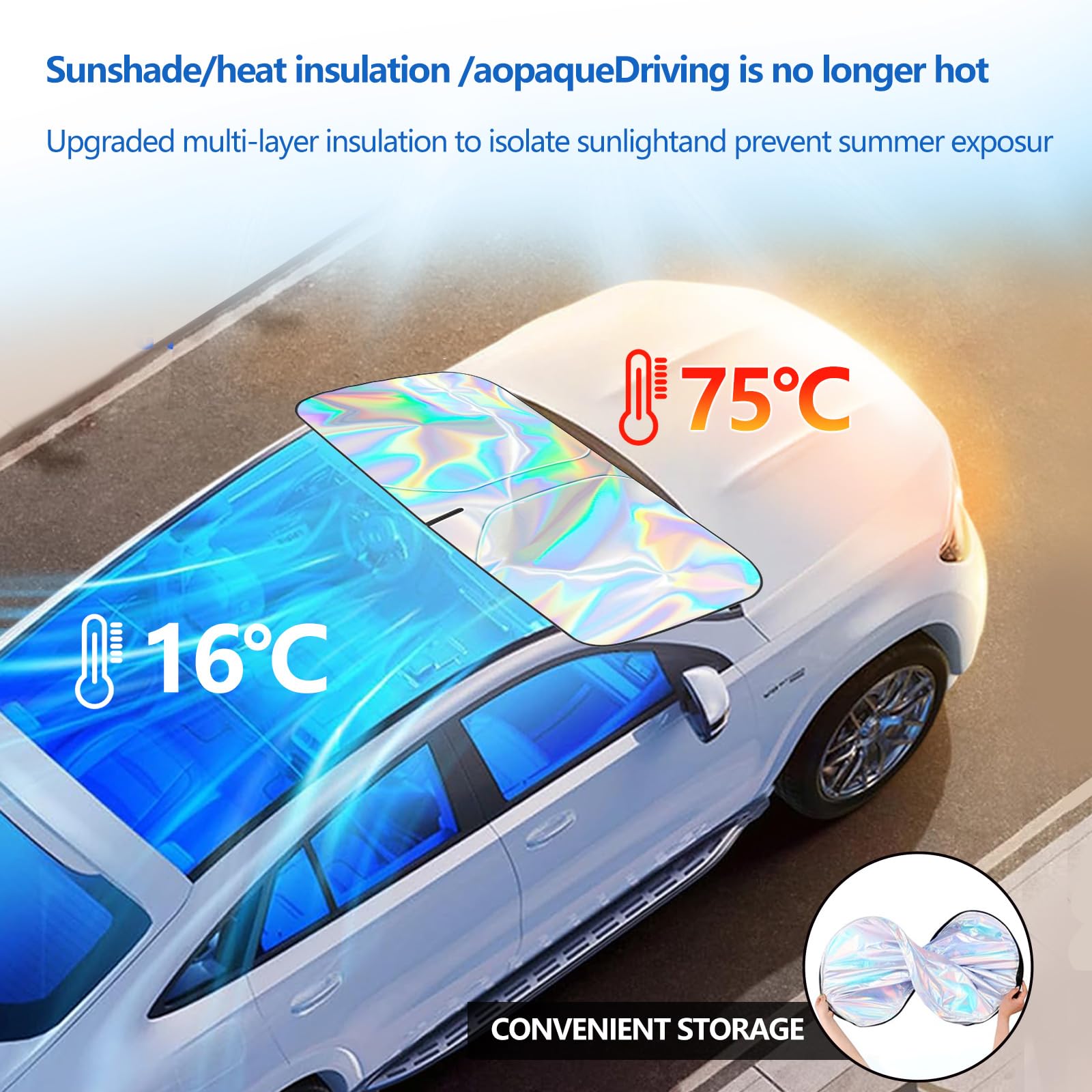 • Auto-Sonnenschutz Für Frontscheibe - 145x80 Cm Faltbarer Hitzeschutz Für SUV & PKW