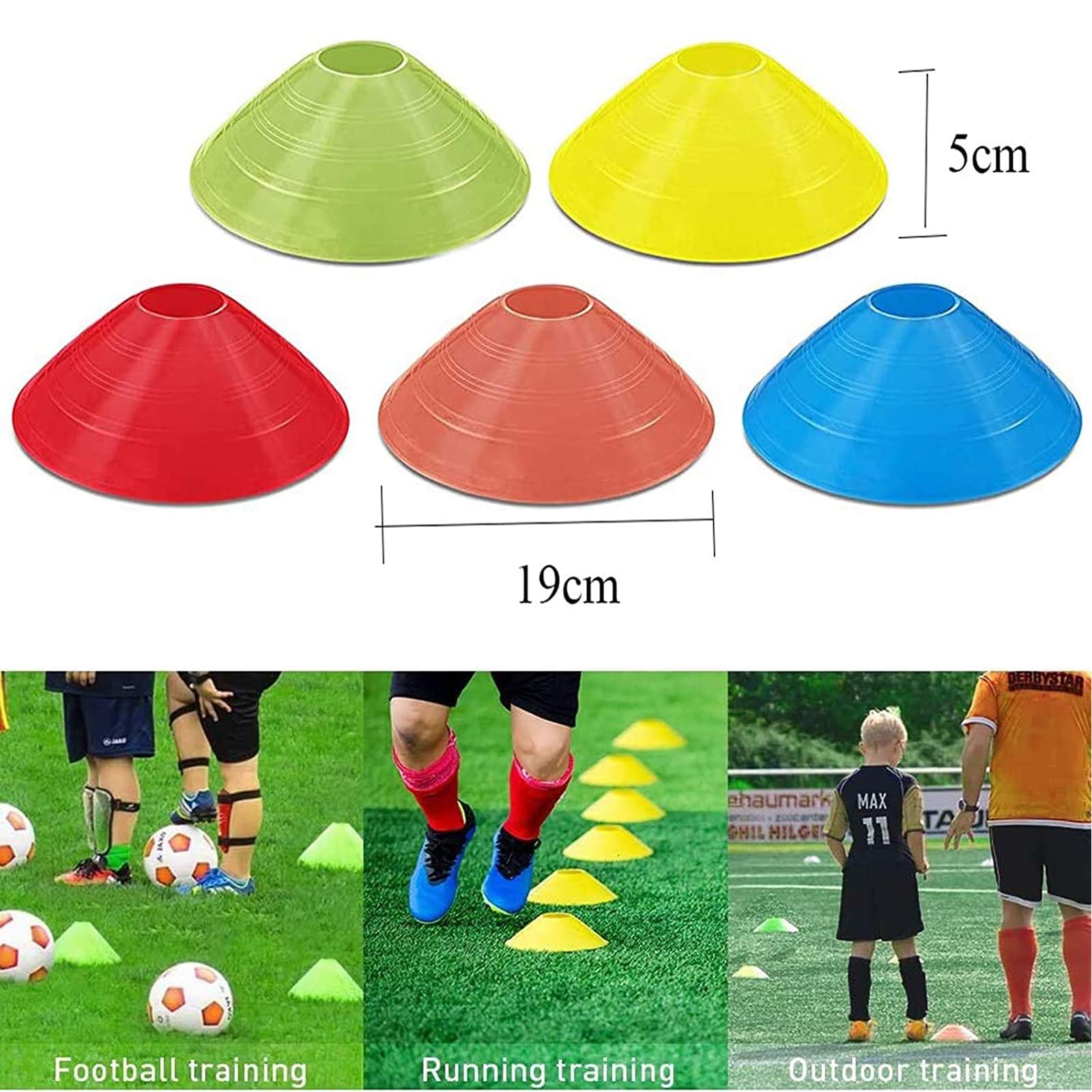 Perfekt für jedes Fußballtraining! Diese 10 robusten Markierungshütchen aus PE-Material sind unverzichtbar für jeden Trainer und Sportbegeisterten. Mit 19cm Durchmesser und 5cm Höhe sind sie stabil genug, um nicht umzufallen, aber flexibel genug, um bei Berührung keine Verletzungen zu verursachen. Die knalligen Farben (Rot, Orange, Gelb, Grün) sorgen für beste Sichtbarkeit auf dem Platz. Ob für Slalomparcours, Passübungen oder zur Abgrenzung von Spielfeldern - diese Hütchen sind vielseitig einsetzbar. Sie sind ungiftig, geruchlos und wetterfest - also perfekt für drinnen und draußen. Mit dem praktischen Tragegriff kannst du alle 10 Hütchen bequem transportieren. Auch für andere Sportarten wie Leichtathletik, Hockey oder für den Verkehrsunterricht super geeignet. Ein absolutes Basic für jede Sporttasche!