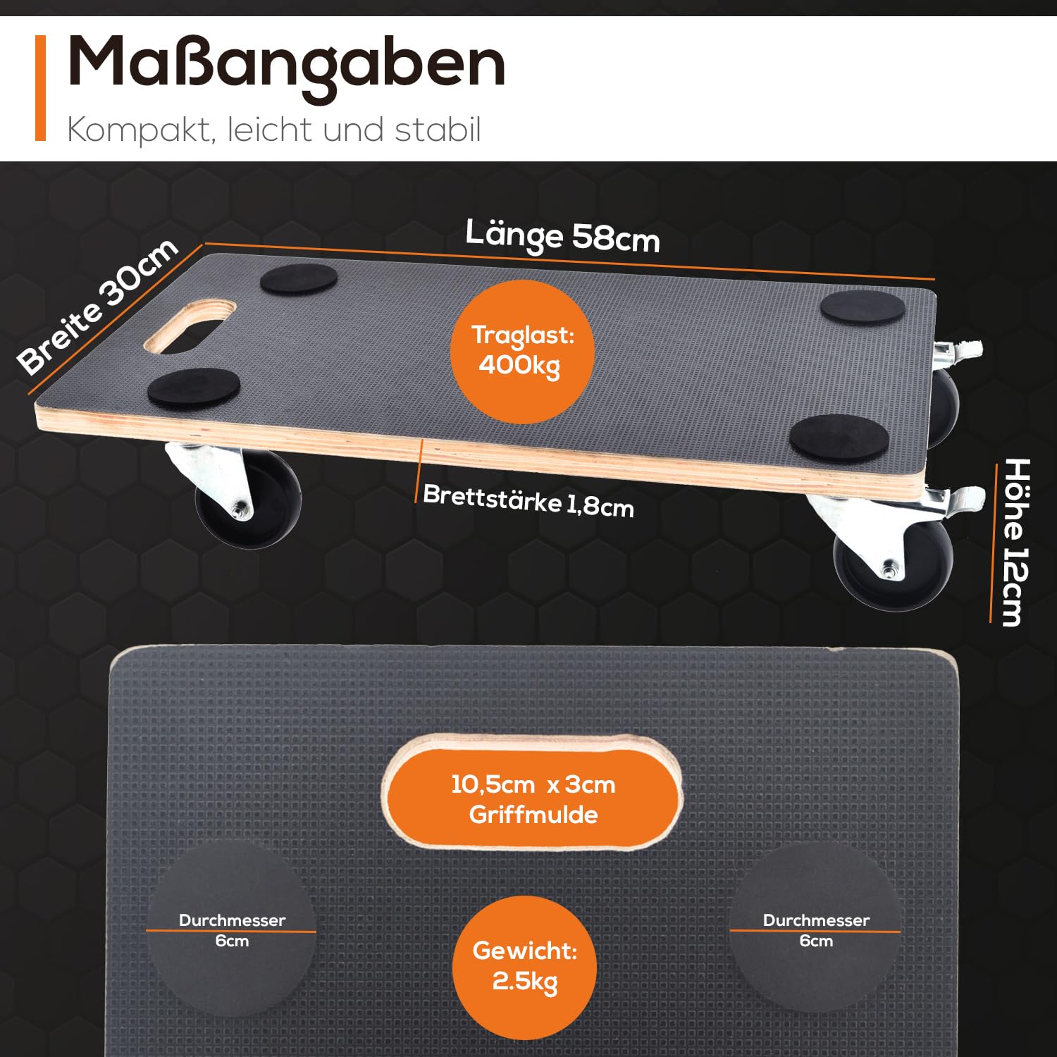 Schwerlast-Profi für deinen Umzug! Diese YRHome Transportroller bringen selbst die schwersten Möbel problemlos von A nach B. Mit 60x40x14,5cm Größe und satten 200kg Belastbarkeit. Die wasserfeste Holzplatte ist rutschfest - deine Möbel bleiben sicher. Mit praktischer Fußbremse zum Feststellen und weichen TPR/PP-Rollen die den Boden schonen. Im 2er-Set perfekt für große Umzüge oder Werkstatt. Einfach Möbel drauf, schieben - und schon geht's los! Spart Rücken und Nerven. Der beste Helfer den du je hattest!