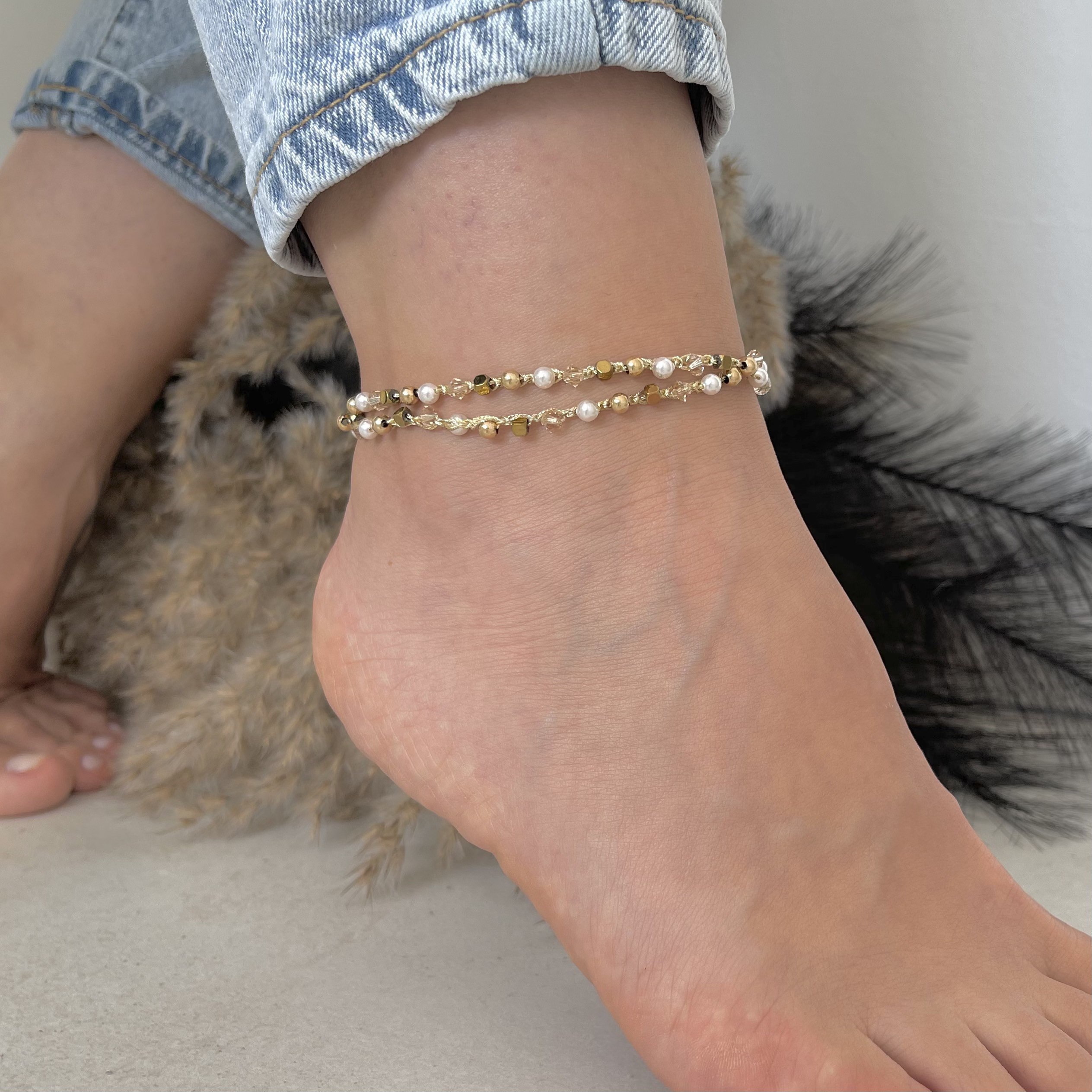 Zeigt eure stylischen Füße! Dieses Set mit 5 verschiedenen Boho-Fußkettchen bringt Sommerfeeling und Urlaubsstimmung in euren Alltag. Die goldenen Fußketten sind mit hübschen Perlen verziert und lassen sich individuell anpassen - passt also bei jeder Fußgröße. Perfekt für Sandalen-Tage, Strandurlaub oder einfach um im Sommer etwas Schmuck an den Füßen zu tragen. Aus 14K vergoldetem Material, damit der Glanz möglichst lange hält. Super vielseitig: Tragt sie solo oder stacked - also mehrere gleichzeitig - für den angesagten Layered Look. Ob zum Sommerkleid, zur Jeans oder zum Bikini - diese Fußkettchen machen jede Outfit ein bisschen besonderer. Auch ein tolles Geschenk für die beste Freundin, Schwester oder einfach für sich selbst!