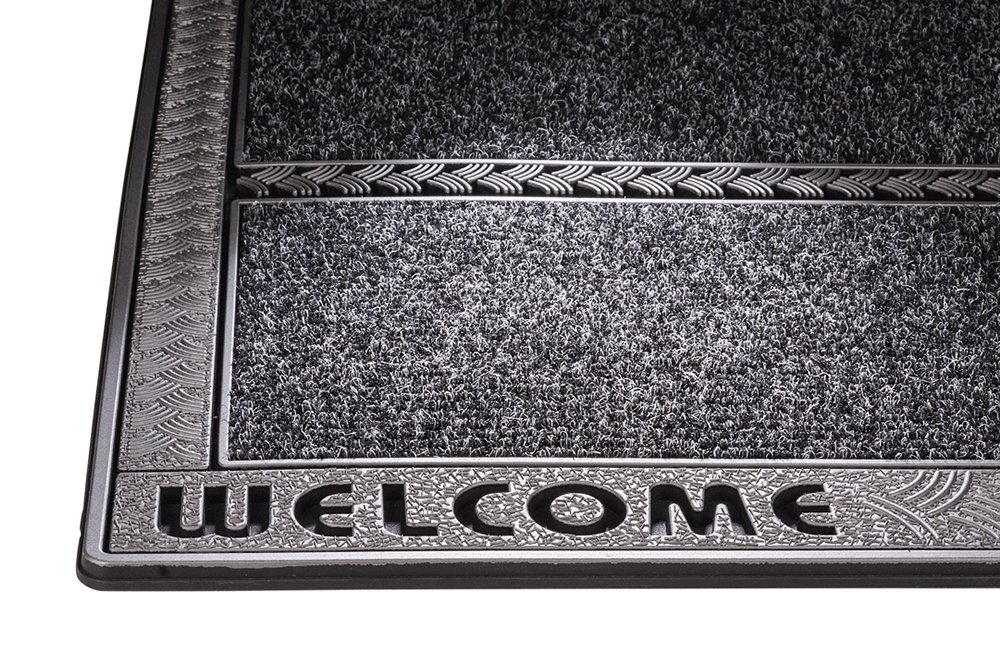 Willkommen in Stil! Diese PUR SkylineClean Fußmatte in 75x50cm sorgt für saubere Füße und schöne Optik. Mit 'Welcome'-Aufdruck und modernem Blatt-Muster in Metallic Anthrazit. Aus recyceltem TPE-Kunststoff - 100% nachhaltig und umweltfreundlich. Die Noppenfläche entfernt effektiv Schmutz und Feuchtigkeit. Perfekt für Innen und Außen, wetterbeständig und leicht zu reinigen. Mach deinen Eingangsbereich zum Hingucker und schütze deine Böden vor Dreck. Deutsche Qualität die lange hält - eine Investition die sich lohnt!