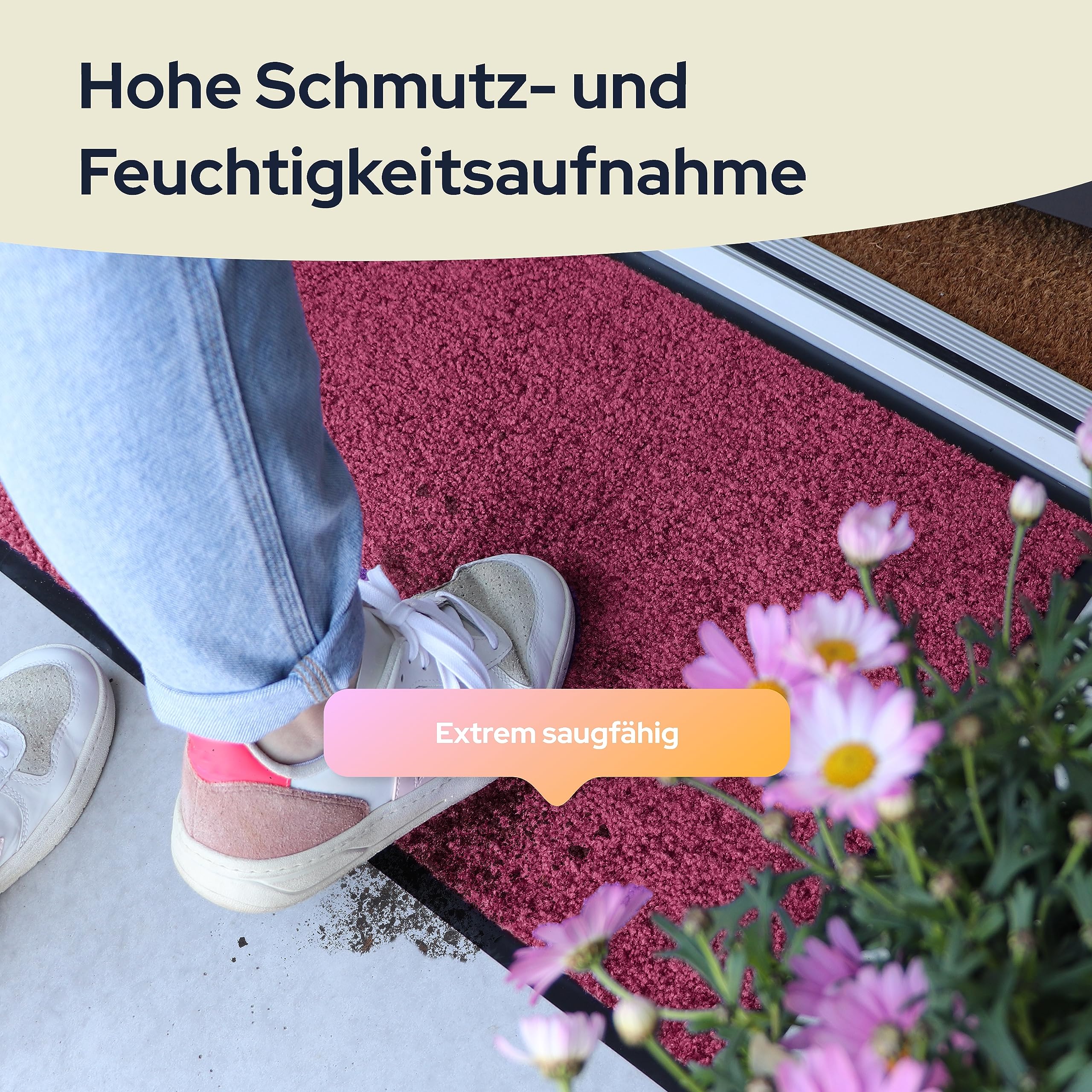 Willkommen auf einem sauberen Teppich! Diese Primaflor Fußmatte 'Dancer' in Brombeere Burgund sorgt für Ordnung in deinem Eingangsbereich. Mit 80x120cm großzügig dimensioniert, fängt sie effektiv Schmutz, Feuchtigkeit und Sand von den Schuhen. Die innovative Gel-Rückseite verhindert lästiges Verrutschen - selbst bei hohem Besucheraufkommen. Die dichten, ineinandergreifenden Teppichfasern garantieren extreme Robustheit und Langlebigkeit. Das dezente Muster kaschiert Verschmutzungen optimal, während einfaches Ausklopfen und Absaugen für blitzschnelle Reinigung sorgen. Vielseitig einsetzbar als Flurläufer, Eingangsmatte oder Türvorleger. Das schlichte Design passt in jeden Einrichtungsstil. Mit 30-Tage-Zufriedenheitsgarantie - probiere sie risikofrei aus! Hol dir diese hochwertige Fußmatte und sag Tschüss zu verschmutzten Böden - dein Zuhause bleibt sauberer!