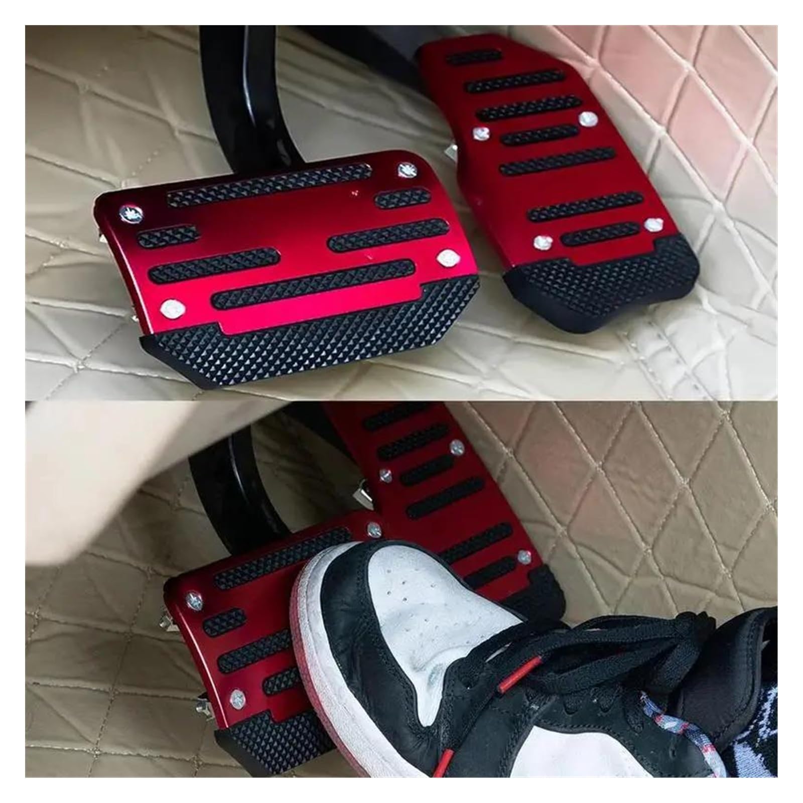 Willst du mehr Sportlichkeit und Sicherheit in deinem Auto? Dieses 3-teilige Pedal-Set in knalligem Rot macht's möglich! Enthält Gas-, Bremse- und Kupplungspedal in sportlichem Aluminium-Design. Die spezielle Anti-Rutsch-Oberfläche gibt deinen Schuhen perfekten Halt - auch bei Regen oder mit nassen Sohlen. Die vergrößerte Kontaktfläche macht das Bedienen leichter und bequemer, selbst bei langen Fahrten. Universal passend für die meisten Automarken und einfach zu montieren. Bring deinem Fahrzeug-Innenraum einen echten Sport-Flair und fahre sicherer! Einfach anbauen und vom verbesserten Fahrgefühl profitieren.