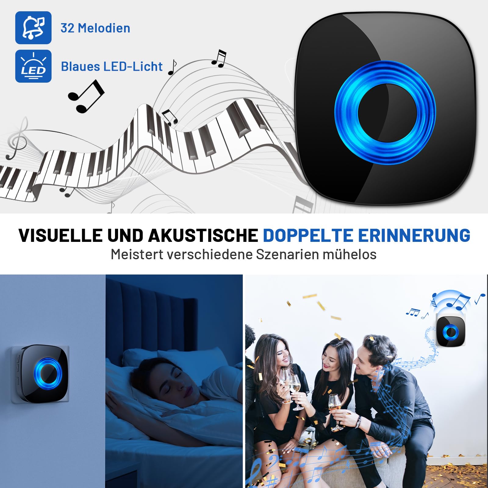 Hörst du deine Blink Türklingel nicht in der ganzen Wohnung? Dieses Funksignal-Kit löst das Problem! Enthält 1 Sender und 2 Empfänger - Reichweite bis zu 200 Meter! 58 verschiedene Klingeltöne und 5 Lautstärkestufen, inklusive Stumm-Modus. Einfache Installation: Sender an der Türklingel anschließen, Empfänger in Steckdose stecken - fertig! Wichtig: Funktioniert NUR mit kabelgebundenen Blink Türklingeln, nicht mit Batterie-Modellen! Das Signal bleibt auch nach Stromausfall erhalten - keine Neueinstellung nötig. Mit LED-Blitzlicht für Hörgeschädigte. Temperaturbeständig von -10°C bis 55°C. Endlich hörst du jeden Besucher, egal wo du in Haus oder Garten bist!