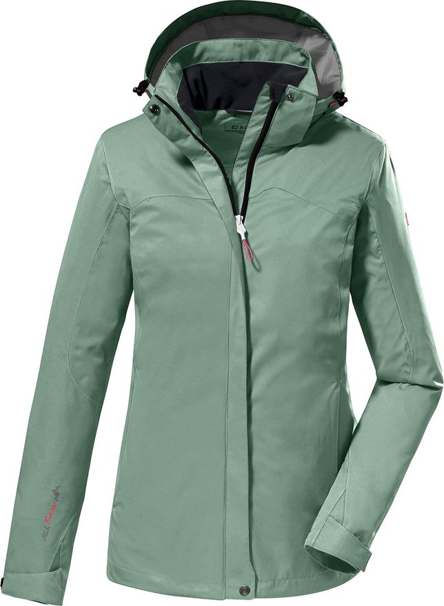 Diese Killtec Damenjacke in Kurzgröße ist der perfekte Begleiter für jedes Wetter! Mit 10.000 mm Wassersäule und verschweißten Nähten hält sie auch bei starkem Regen trocken. Gleichzeitig ist sie mit 3.000 g/m²/24 h Wasserdampfdurchlässigkeit angenehm atmungsaktiv - du schwitzt also nicht so schnell. Die Kapuze ist abnehmbar und individuell einstellbar, falls mal ein Regenschauer überrascht. Besonders kuschelig: Kapuze und Kragen sind mit weichem Teddy-Fleece gefüttert, das zusätzlich vor Wind und Kälte schützt. Die Ärmelbündchen mit Klettverschluss lassen sich perfekt an deine Armlänge anpassen. Zahlreiche Taschen bieten Platz für Handy, Schlüssel und Geldbeutel. Der Reißverschluss hat einen praktischen Kinnschutz, der vor Reibung schützt. Das Sahnehäubchen: Die Jacke wurde mit fluorfreien Mitteln imprägniert - gut für die Umwelt! Die Kurzgröße bedeutet kürzere Ärmel und ein kürzeres Rumpfteil - ideal für kleinere Frauen. Ob beim Wandern, Stadtbummel oder auf Reisen - diese Jacke sieht nicht nur gut aus, sondern schützt dich zuverlässig vor Wind und Wetter. Ein echter Allrounder für die Übergangszeit!