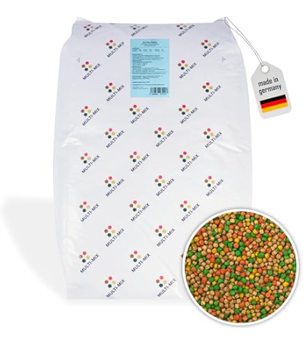 Moin Teichbesitzer! Dieses Koi-Futter ist echt der Hit für deine Fische. Es ist ein 3er-Mix aus Spirulina, Knoblauch und Color-Futter - also alles drin, was deine Kois brauchen. Die Pellets haben 6mm Größe und sind damit perfekt für ausgewachsene Fische. Spirulina sorgt für starke Abwehrkräfte, Knoblauch unterstützt die Verdauung und das Color-Futter mit Astaxanthin bringt die schönen Farben richtig zum Strahlen! Geliefert wird das Futter in einem praktischen Kunststoffeimer mit Deckel - so bleibt es lange frisch und du hast immer alles griffbereit. Deine Fische werden dir dieses Premium-Futter danken! Einfach trocken lagern und täglich füttern. Übrigens: Das Futter ist auch super für Goldfische und Störe geeignet. Wenn du deinen Fischen was Gutes tun willst, ist das hier die perfekte Wahl. Die Qualität ist wirklich top und die Fische gehen total drauf ab!