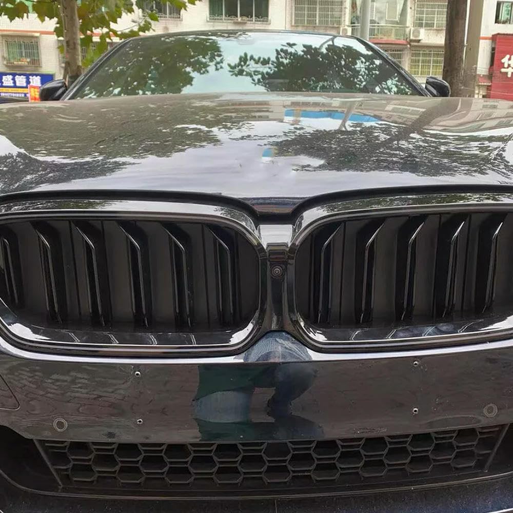 Mach deinen BMW 5er G30/G38 von 2021 noch aggressiver! Dieser Kühlergrill in Carbon-Optik mit Doppellamellen-Design gibt deiner Front den ultimativen Sport-Look. Aus hochwertigem ABS-Kunststoff - UV-beständig, witterungsfest und stoßfest. Das optimierte Lamellendesign verbessert nicht nur die Optik, sondern auch den Luftstrom für bessere Motorkühlung. Das integrierte Schutzgitter schützt deinen Kühler vor Steinchen und Schmutz. Montage ist werkzeuglos möglich - einfach per Clip-System einrasten, keine Modifikationen nötig. Passt perfekt wie das Original. Verpasse deinem BMW diesen individuellen Touch und lass ihn aus der Masse hervorstechen. Achtung: Vor dem Kauf unbedingt die Kompatibilität mit deinem speziellen Modell prüfen! Carbon-Optik, die einfach fabelhaft aussieht und deinen 5er aufwertet.