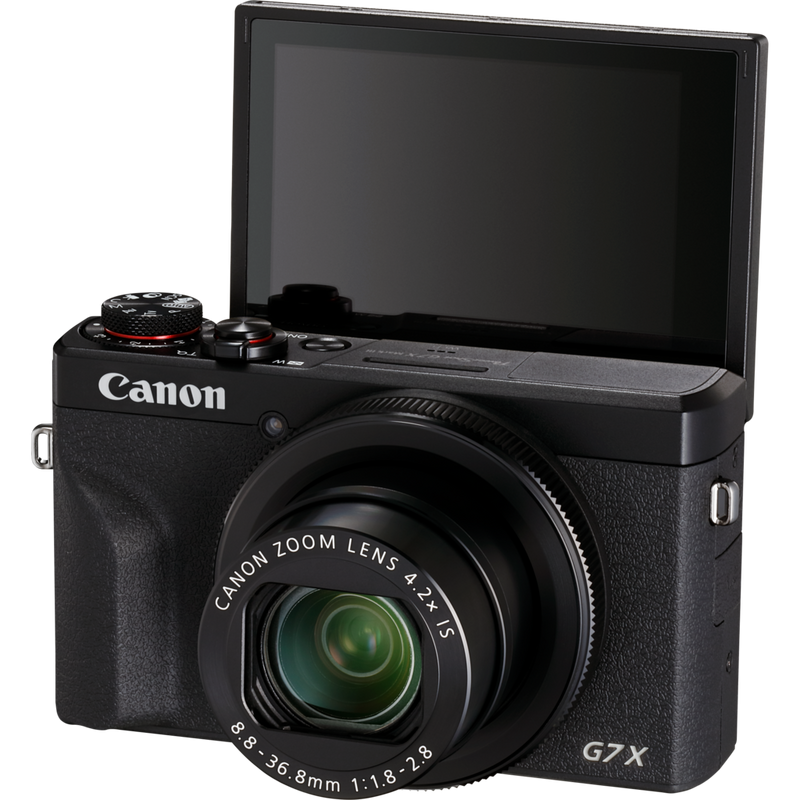 Die perfekte Kamera für Content-Creator und Hobby-Fotografen! Die Canon PowerShot G7 X Mark III in schwarz ist ein absolutes Powerpaket. Mit ihrem 20,1 MP CMOS-Sensor und dem DIGIC 8 Prozessor schießt du gestochen scharfe Fotos mit bis zu 20 fps - selbst im RAW-Format. Der klappbare Touchscreen macht Selfies und Vlogs zum Kinderspiel. Perfekt für unterwegs: Das 24mm F1.8-2.8 Weitwinkelobjektiv mit 4,2-fachem optischem Zoom holt alles aus deinem Motiv raus. Und das Beste: Du kannst direkt live auf YouTube streamen oder die Kamera als Webcam nutzen - einfach die kostenlose Canon Software runterladen! Mit integriertem WLAN und Bluetooth teilst du deine Fotos sofort online. Bildstabilisator, 31 Autofokus-Punkte und ISO bis 25600 sorgen für professionelle Ergebnisse bei jedem Licht. Ob Reise, Event oder täglicher Gebrauch - diese Kamera rockt!