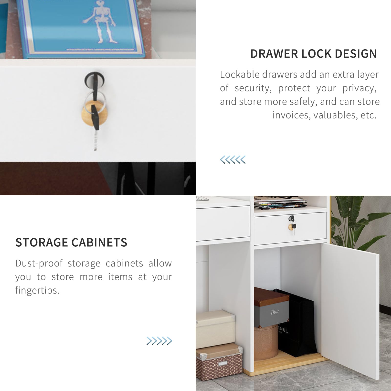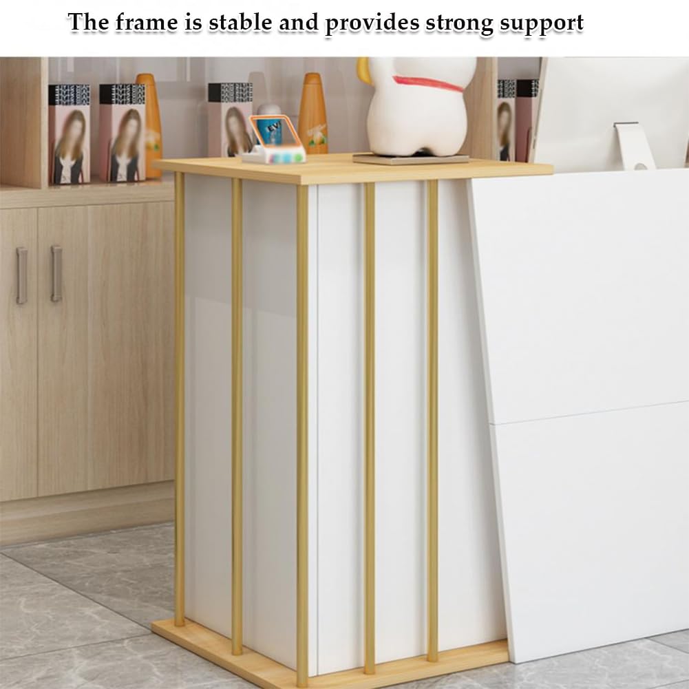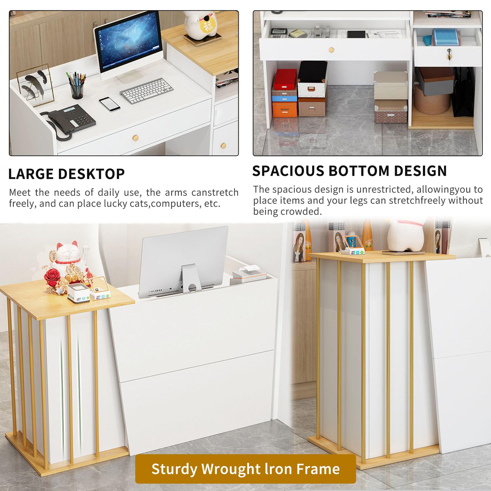 Der professionelle Auftritt für dein Geschäft! Diese GAOXIAO Empfangstheke kombiniert Stil mit praktischem Stauraum. Verfügbar in drei Größen: 100cm, 120cm oder 140cm Breite, jeweils 40cm Tiefe und 90cm Höhe. Ausgestattet mit einem geräumigen Schreibtisch, Schrankregalen, 2 Schubladen und einem Schrank mit Tür bietet sie reichlich Platz für Monitor, Laptop, Bücher, Akten und Büromaterialien. Die stabile Konstruktion aus hochwertiger Faserplatte garantiert Langlebigkeit. Die oberfläche ist mit umweltfreundlichen, lackfreien Materialien behandelt und wetterbeständig. Einfache Montage mit beiliegender Anleitung - alle Teile sind klar gekennzeichnet. Perfekt für Einkaufszentren, Supermärkte, Nagelstudios, Schönheitssalons, Bekleidungsgeschäfte, Firmenhallen, Bars und SPA-Studios. Mit dieser Theke schaffst du einen organisierten und professionellen Arbeitsbereich der Kunden sofort beeindruckt. Optimiere deine Geschäftsabläufe mit diesem vielseitigen Möbelstück!